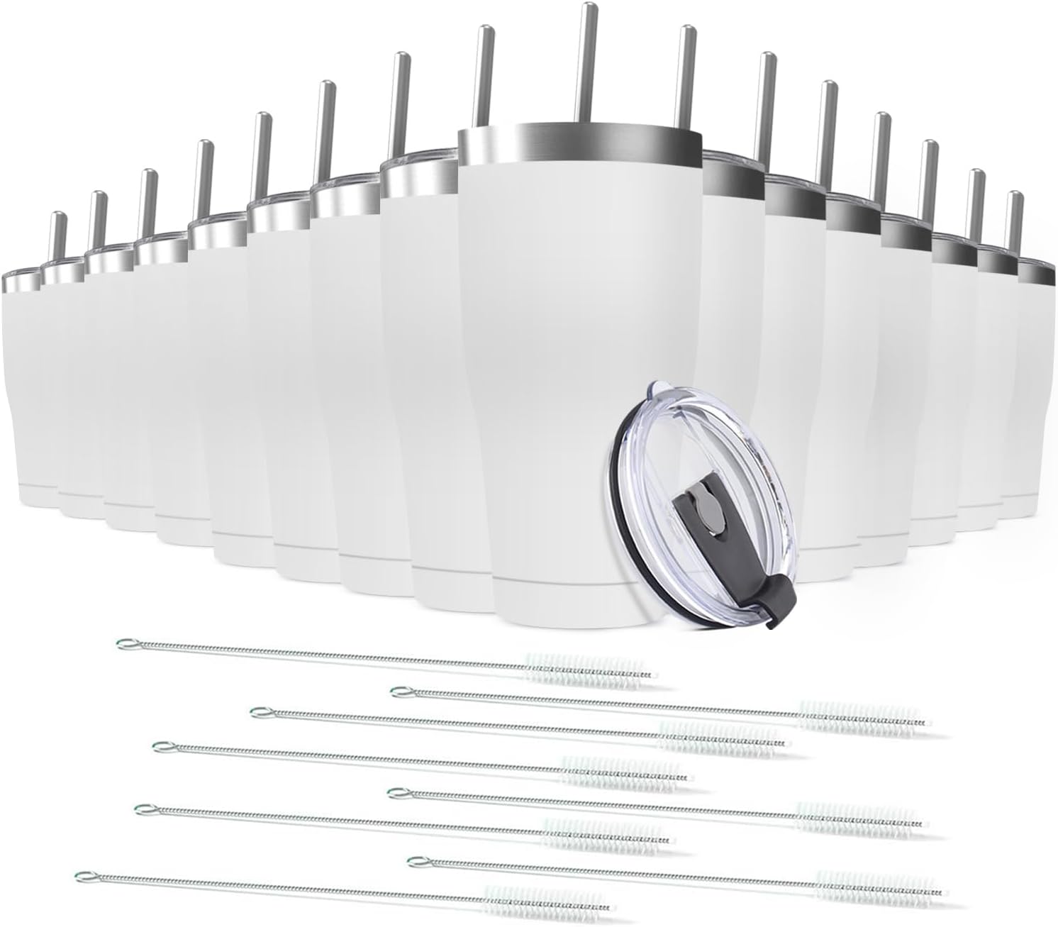 16 Pack 20oz Stainless Steel Tumblers Bulk Reusable Travel Mugs with Lid, Double Wall Powder Coated Coffe Cup for Home, Office, Outdoor Suitable for Vehicle Cup Holders