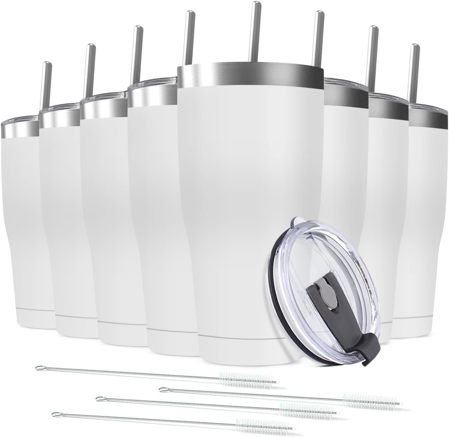 8 Pack 30oz Stainless Steel Tumblers Bulk Reusable Travel Mugs with Lid, Double Wall Powder Coated Coffe Cup for Home, Office, Outdoor Suitable for Vehicle Cup Holders