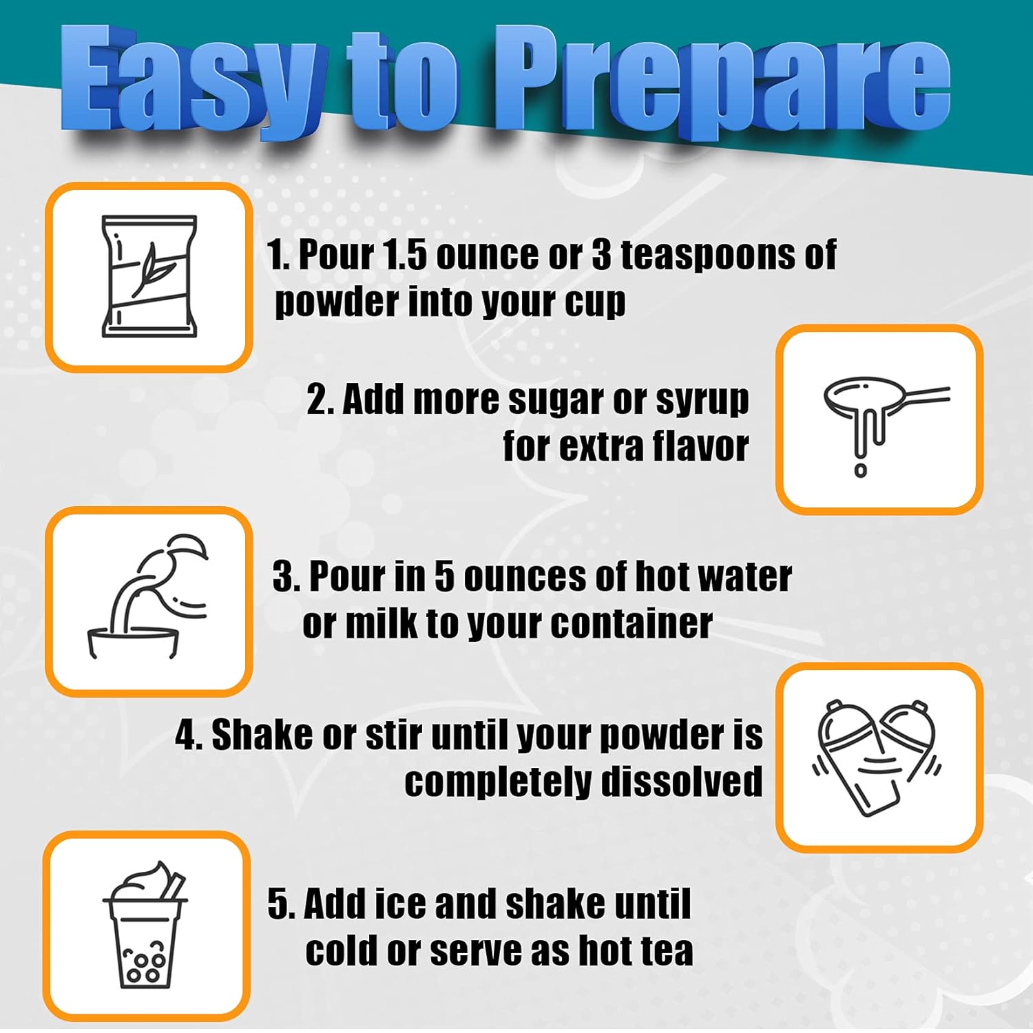 - ✅ SERVE IT HOW YOU LIKE IT - Our milk tea mix can be used to make hot and iced tea drinks or blended frappes and smoothies. Just add 5 ounces of water or milk for every 3 teaspoons of powder mixed.