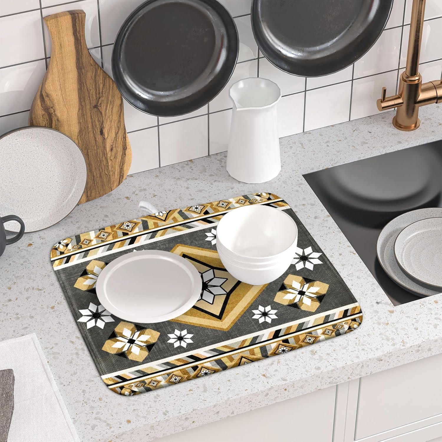 - 1【High Quality Material】:Our boho aztec dish drying mat is made of high absorbent microfiber and the middle is made of composite spongedurable, reversible do not fade and comfortable.