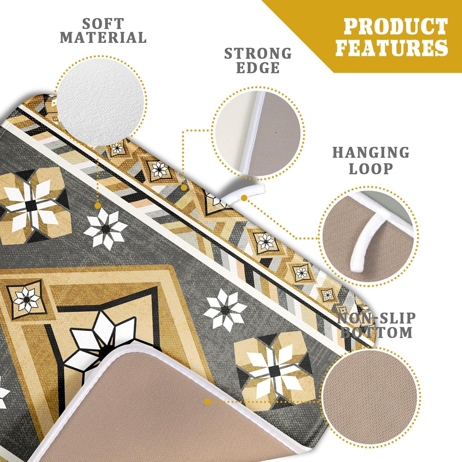 - 2【Widely Used】: The yellow gray boho flower dish drying mats for kitchen counter countertop, coffee bar, dish drain rack, great for air drying dishes, glasses, silverware, pots, pans, fruits and vegetables. It's fade resistant and never stain your kitchen counter topand keep your counter dry.