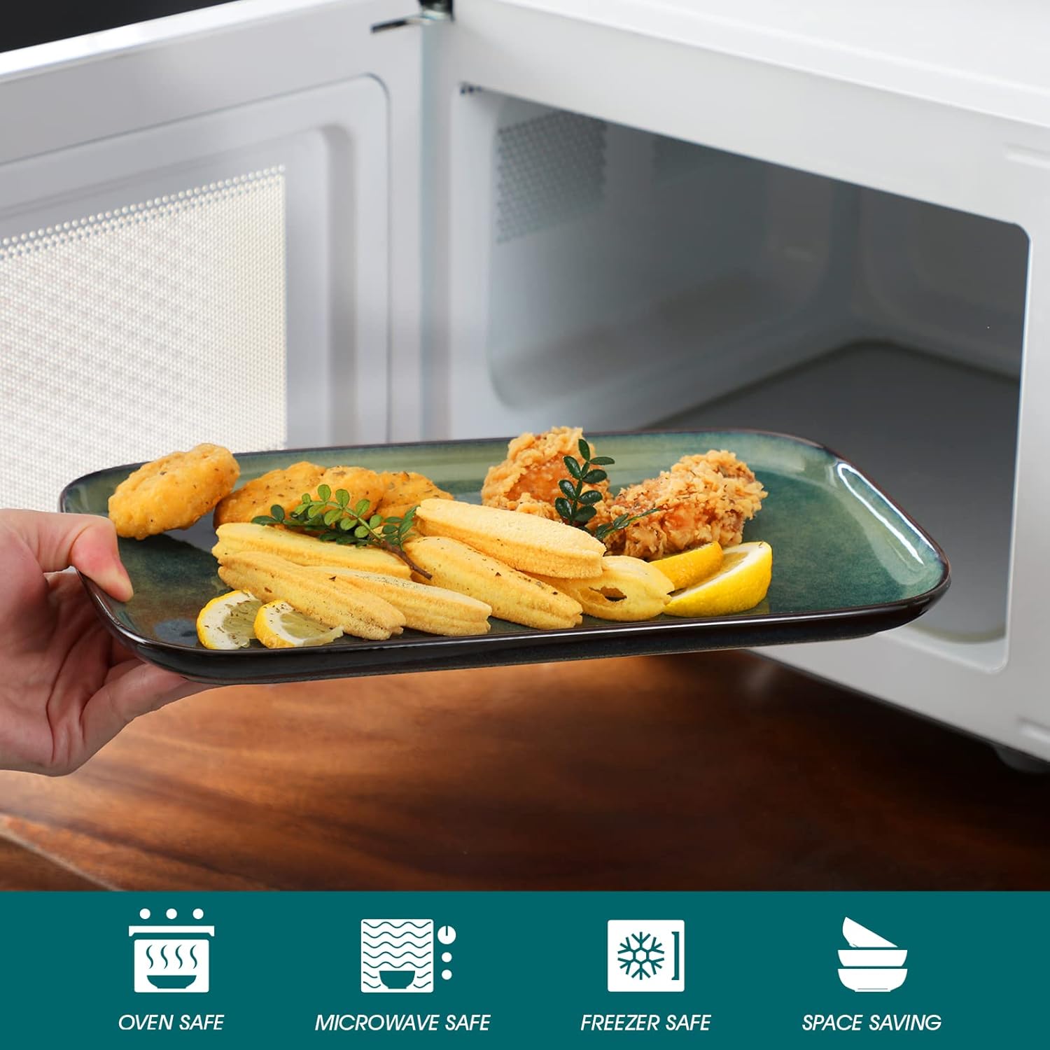 vancasso Stern Serving Platters Set of 4, 11 Inches Rectangular Ceramic Serving Plates, Green Serving Trays for Entertaining