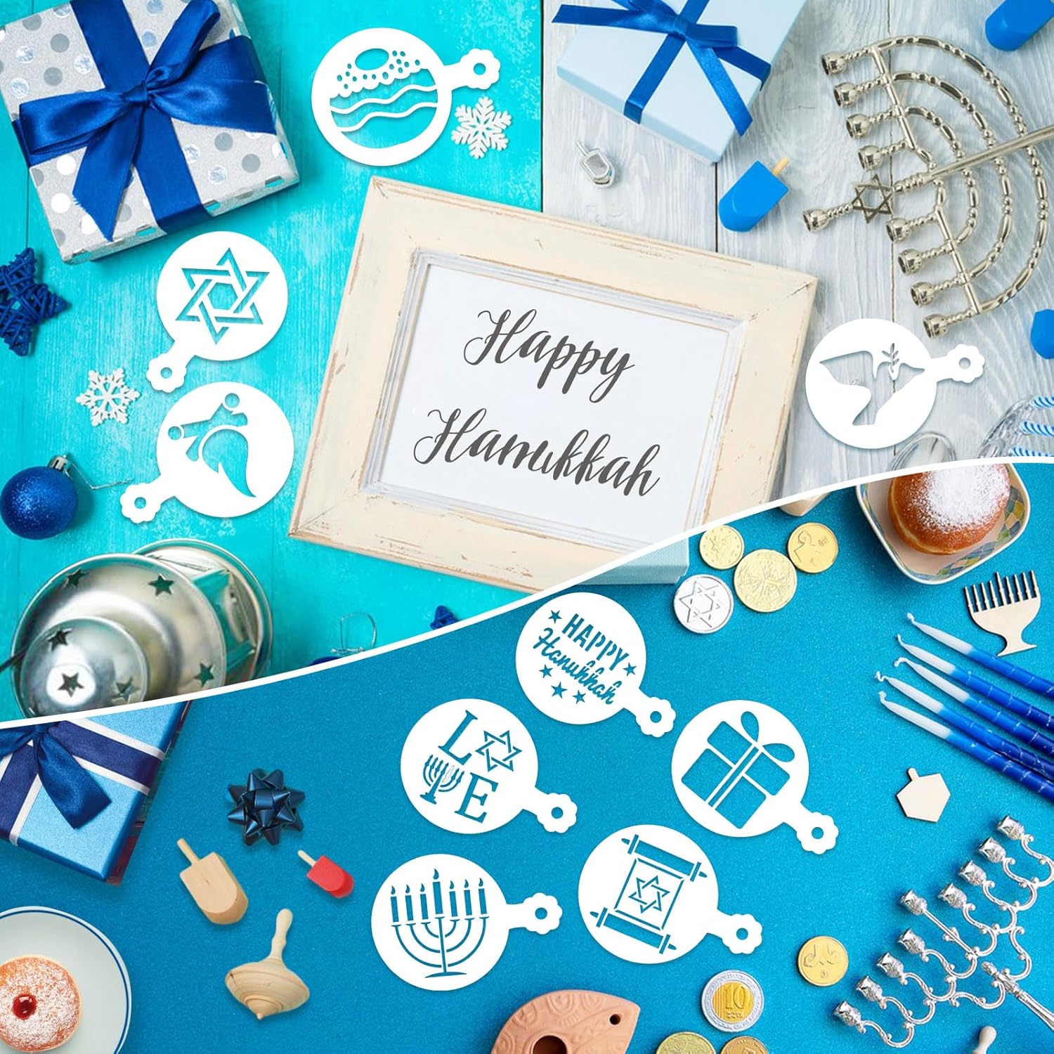 JULBEAR 36 Pcs Reusable Hanukkah Cake Cookie Stencils Dreidel Menorah for Cookies Coffee DIY Hanukkah Holiday Baking Painting Dessert Craft Decoration