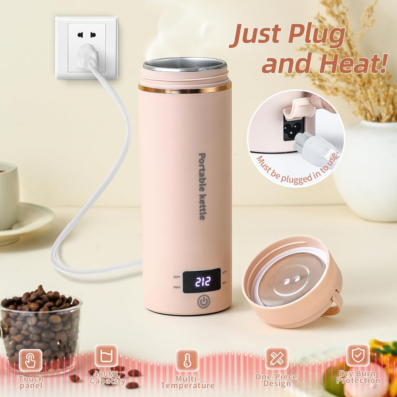 - Portable and Lightweight: Touxila mini electric kettle is only 8.66 inches tall, weighs 1.1 pounds, and has a capacity of 400ml. Portable water boiler's lightweight design is especially suitable for travel, office and hotels, and is also a warm present for your family and friends. (Note: It has to be plugged in to work! )