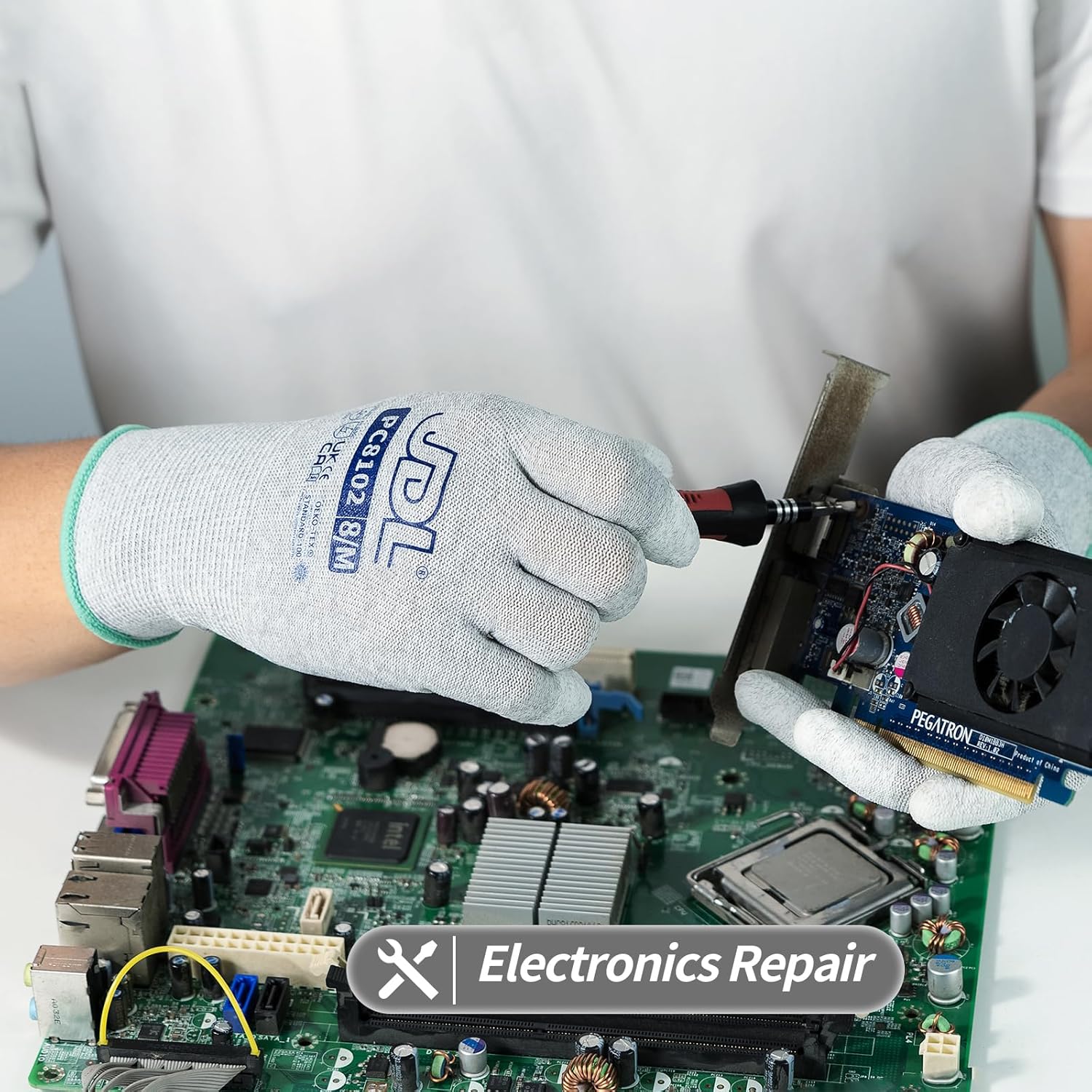JDL ESD Work Gloves, Anti-Static Gloves for PC Building, 36 pairs, Computer Installation & Repair, High Resistance Carbon Fiber Gloves, Large