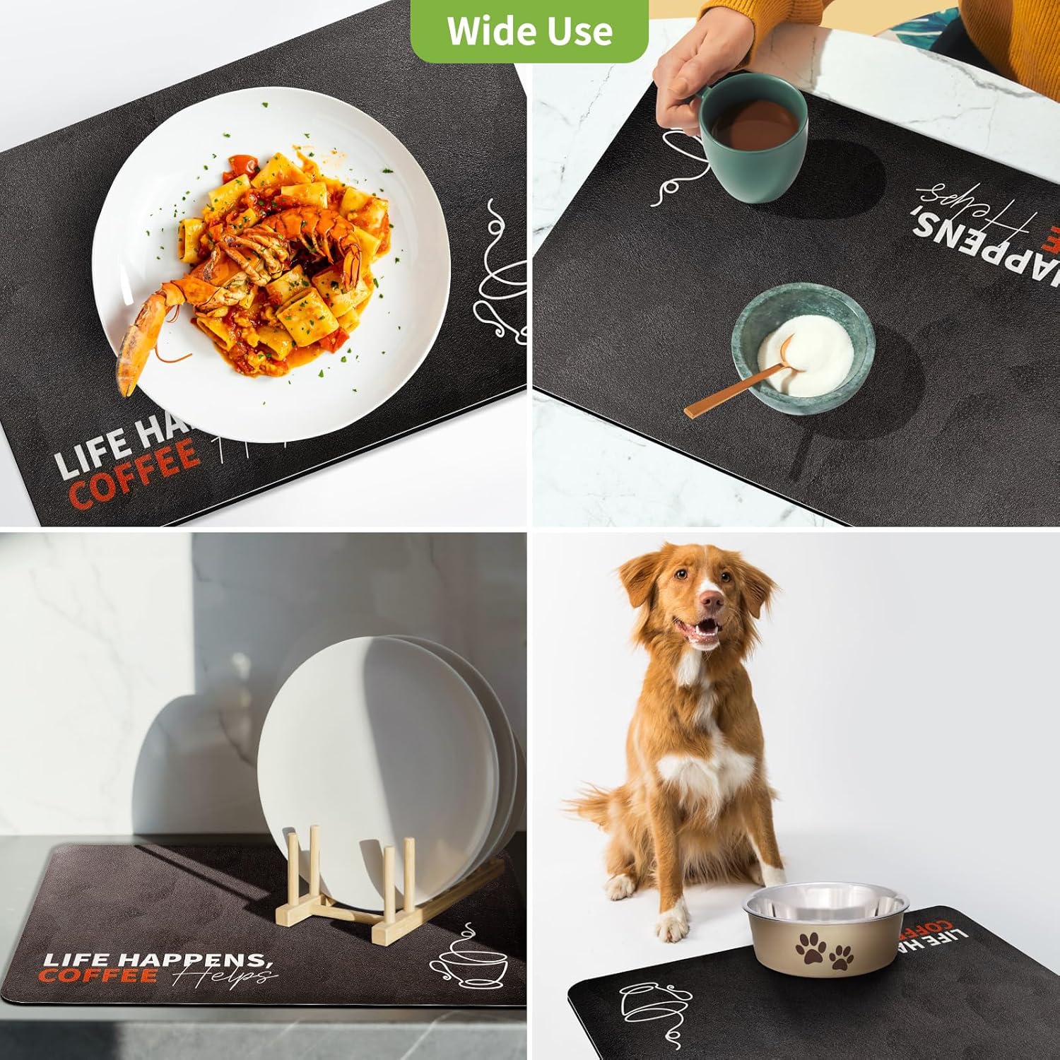 - 【Effortless Maintenance】 Designed for busy households, this mat is not only easy to wipe clean but also rinseable, machine washable, and even dishwasher safe. Whether you use it as a drying mat for dishes or a coffee bar mat, it’s built for hassle-free upkeep and long-lasting durability.