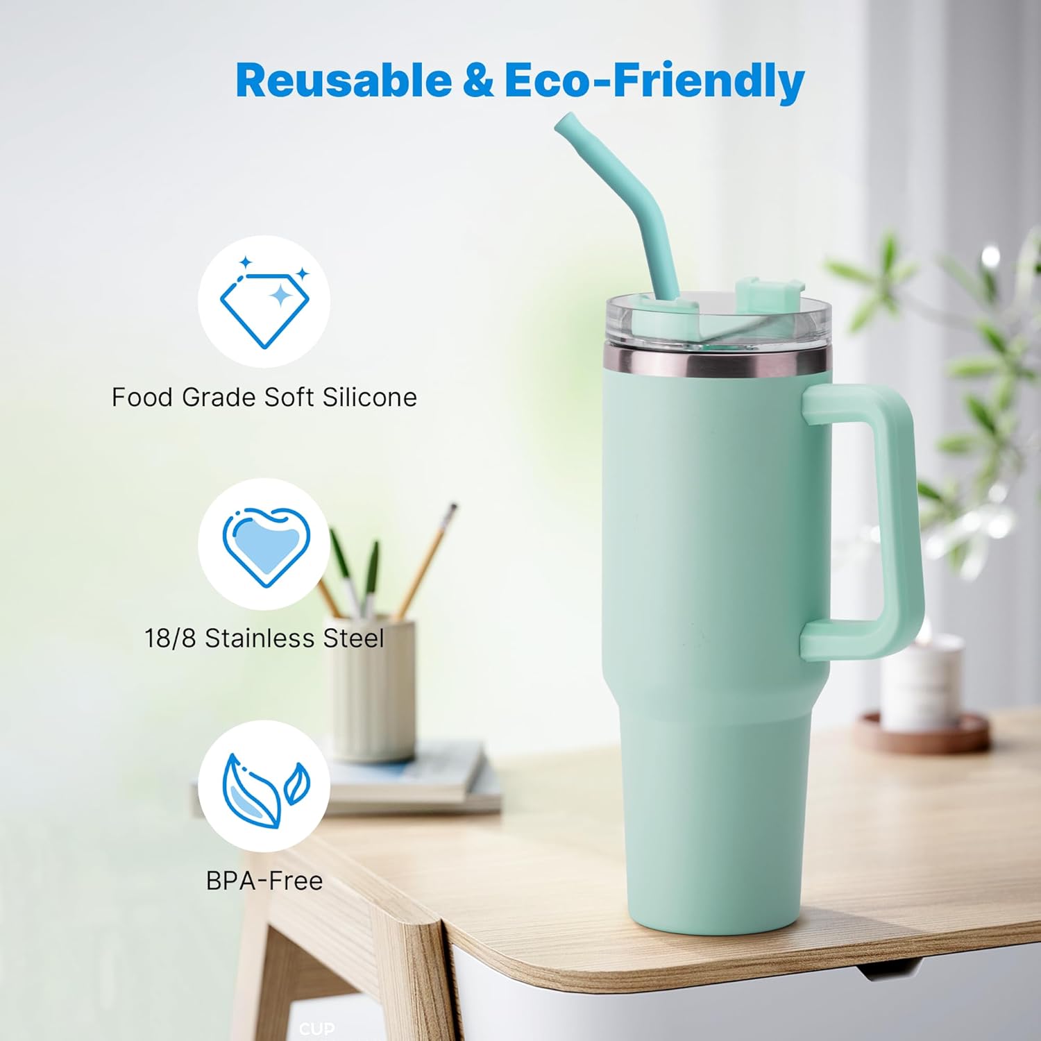 2 Pcs Stainless Steel Straws for 40 oz Stanley Tumbler, Replacement 40 oz Stanley Cup Straw Accessories with Silicone Tips and Cleaning Brush (Light Green)
