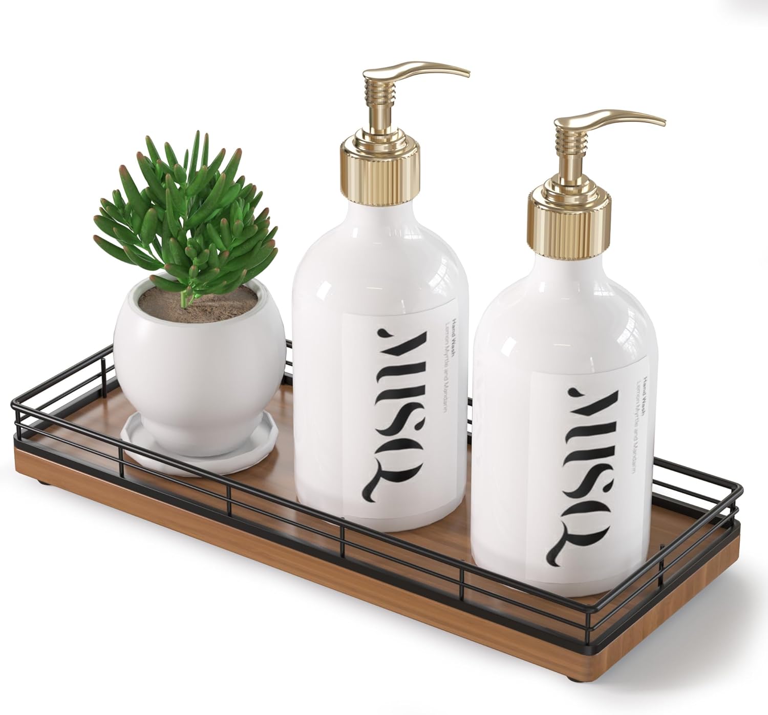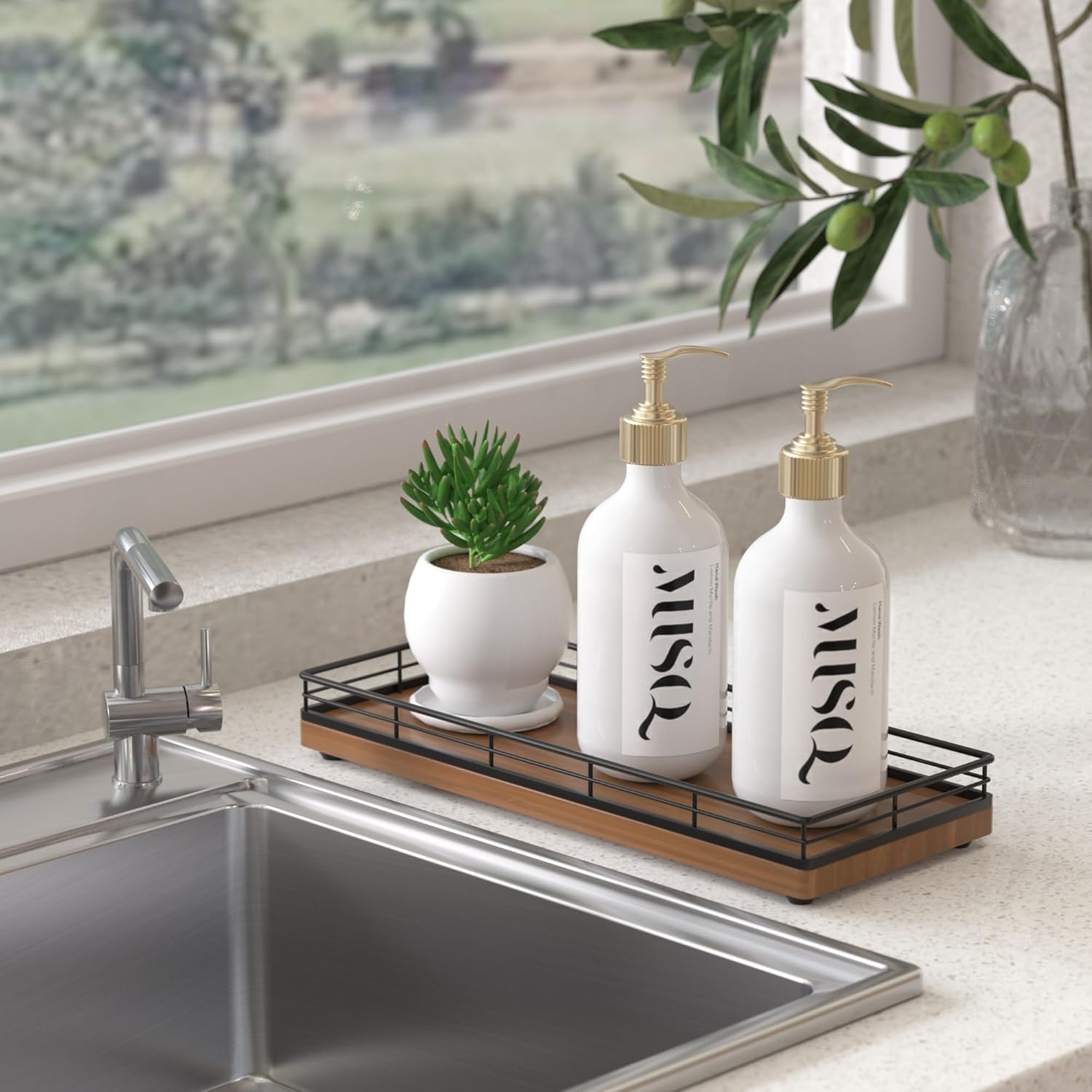 - Versatile Functionality: Elevate your daily routine with our bathroom counter tray; Neatly arrange bathroom essentials like soap, toothbrushes, cotton swab and lotions, keeping your countertop tidy; Add a touch of elegance to your dresser by using the vanity tray to showcase perfumes, jewelry, and cosmetics; Impress your guests with neatly arranged hand towels and toiletries presented on the small tray or use it as a toilet tank tray