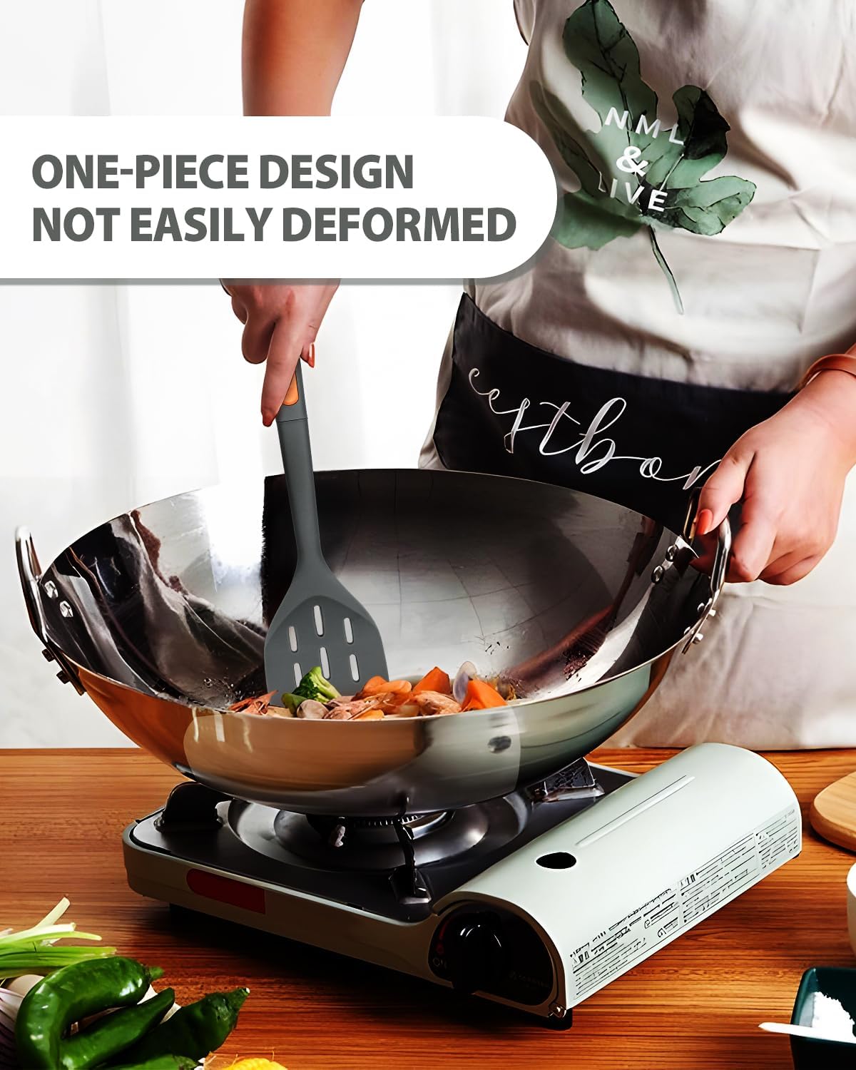 - Heat Resistant: Our silicone spatula turner and spoon set is made of food grade silicone . BPA free and will not rust. Even at 600℉, you don't have to worry about melting or deformation.