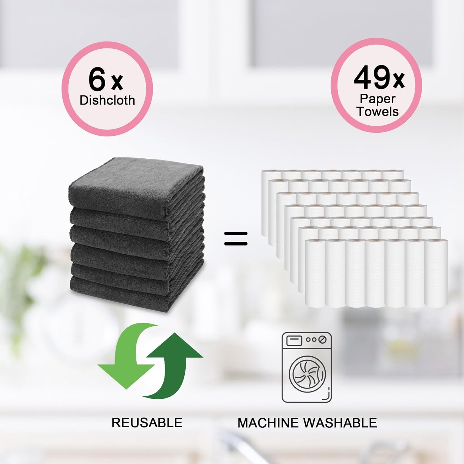 kimteny 13x28 Inches Kitchen Cloth Dish Towels, 400 GSM Premium Dishcloths, Super Absorbent Coral Velvet Microfiber Cleaning Cloths, Fast Drying Rags for Washing Dishes (6 Pack, Dark Grey)