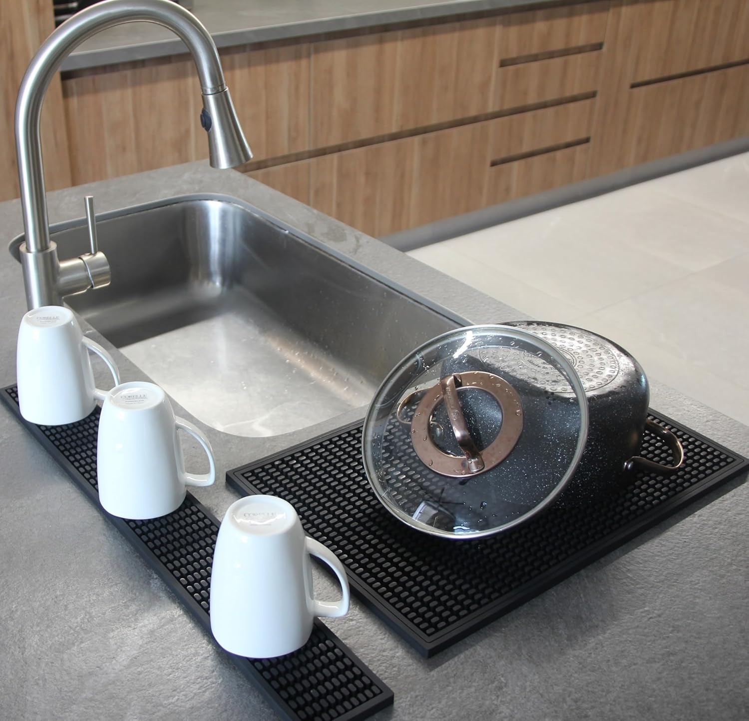- VERSATILE USE: Ideal for coffee bars and restaurants, our rubber bar mats for countertop are a solution to maintain the hygiene of your cocktail shakers and other bar tools. Ideal as a mat for coffee maker, it can also be used as a barber mat, drying glass mat, bathroom toiletry holder, dish drying mat, bedside glass tray, makeup holder and more.
