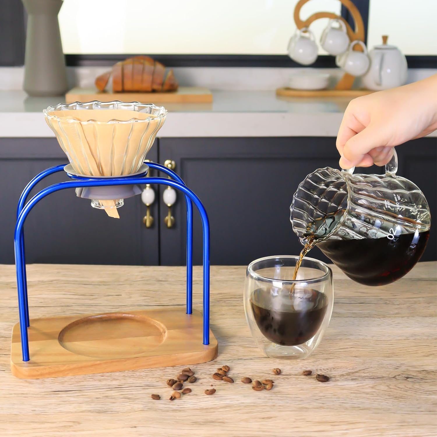 SOTECH Pour on coffee drips, filter Wooden stand Glass sharing pot with paper filter, coffee, tea and saffron set (blove)