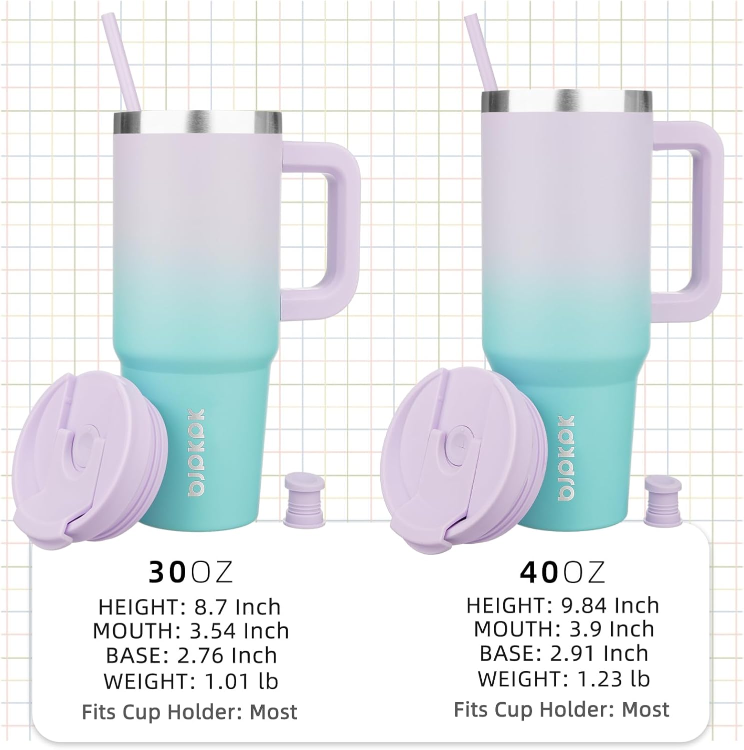 - Cupholder Friendly Travel Mugs With Handle: The Insulated Cups Has a Narrow Bottom And A Wide Mouth Fits Most Cup Holder In Car, With A Comfortable Ergonomic Silicone Handle And Two Reusable Straw To Use More Portable, You Can Stay Sipping From Your Essential Hydration Companion, Even On Your Busiest Days