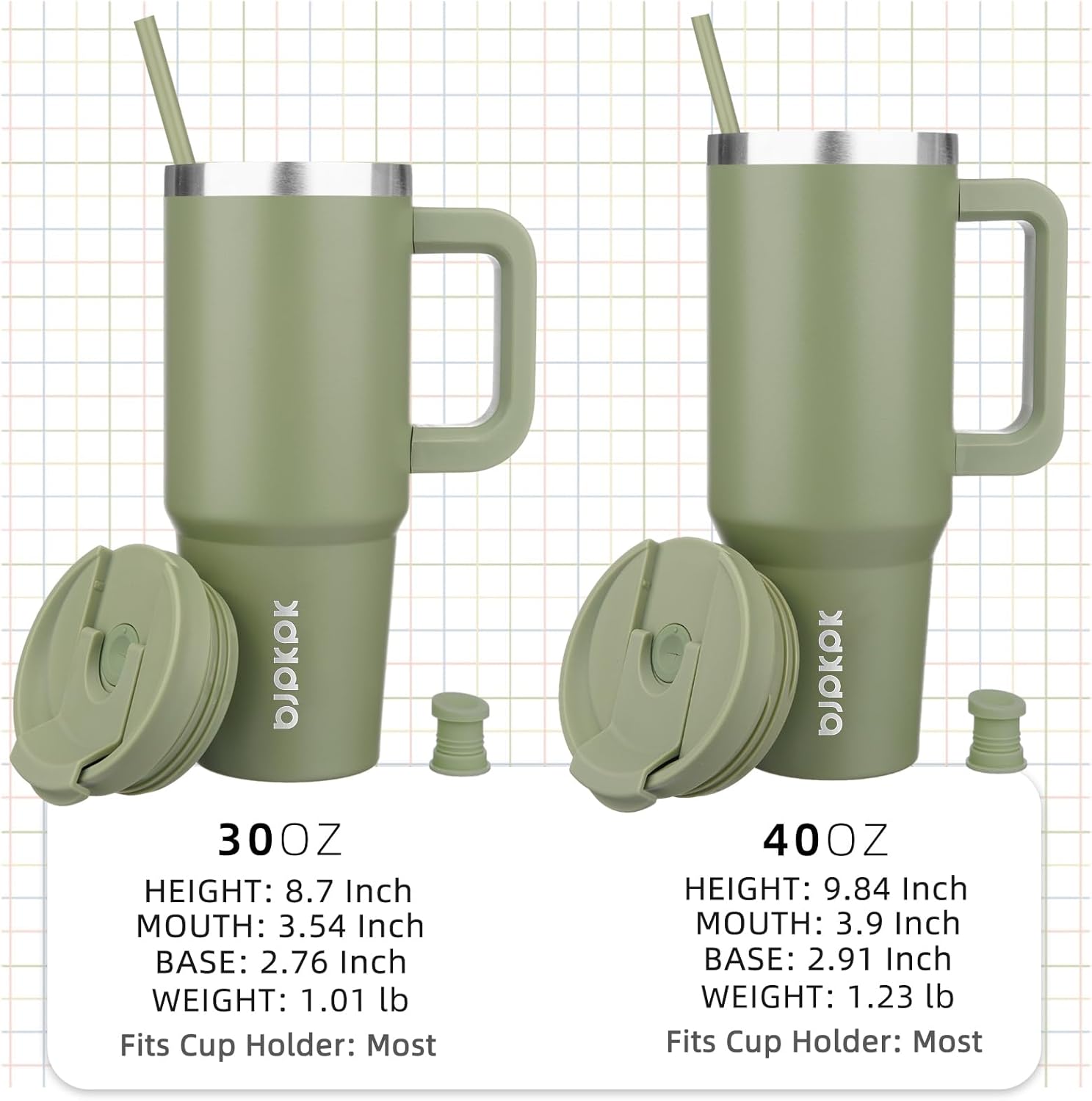 BJPKPK 40 oz Insulated Tumbler With Lid And Straw Stainless Steel Tumblers Cup With Handle For Women And Men,Sage