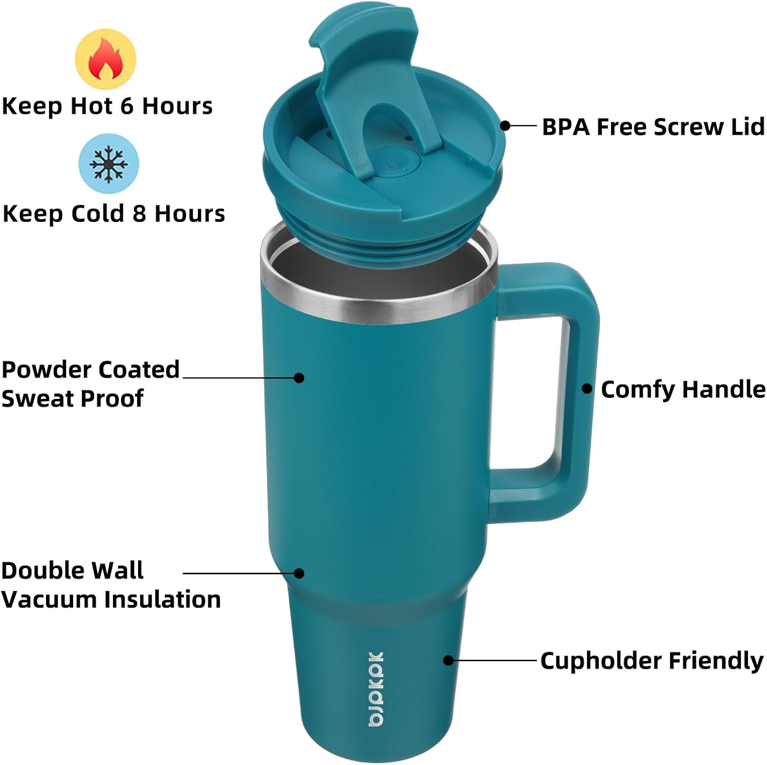 BJPKPK Insulated Tumblers With Handle And Straw 40 oz Stainless Steel Tumbler Cups With Lid,Laguna