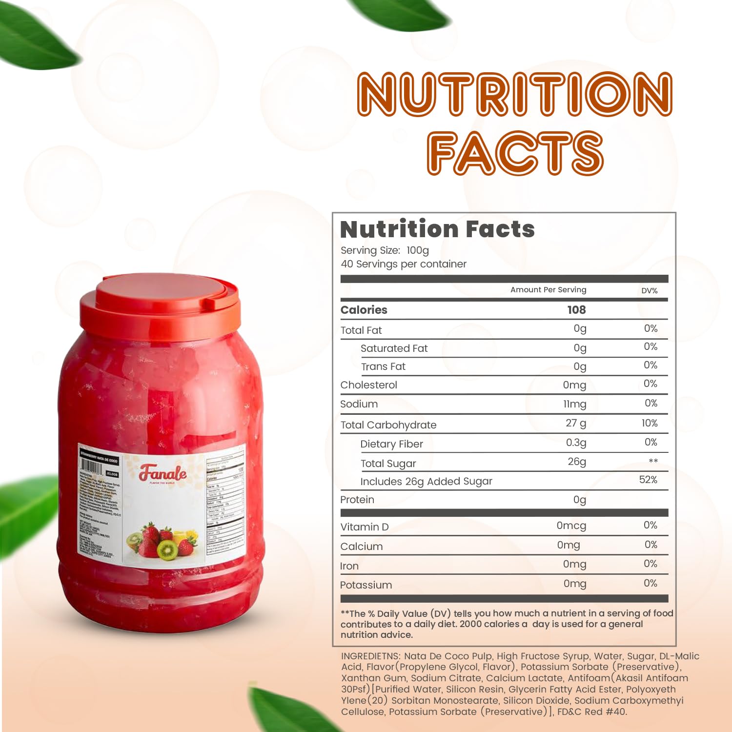 New Fanale Coconut Jelly Topping nata de coco for Boba Tea | Ice Cream | Yogurt | Smoothie | Milk Tea | Desserts Strawberry, 8.3 pound (Pack of 4) | JEL008-CS