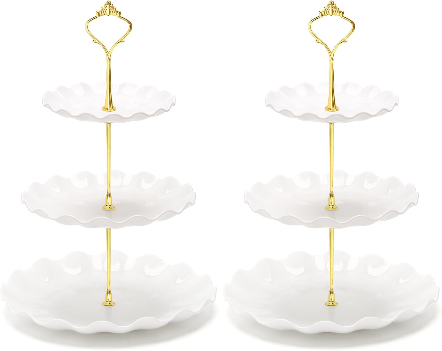 - Elegant Design:Tiered serving stand are carved with wavy edges, the surface is smooth and shiny, full of elegant and romantic feeling. Crown handle design, easy to carry.