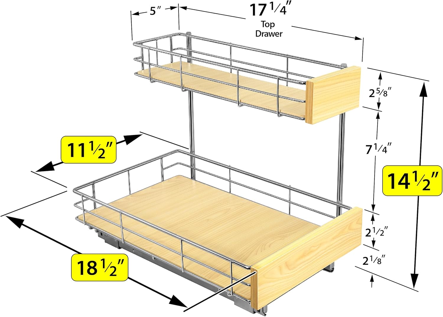 LYNK PROFESSIONAL® SELECT™ Pull Out Under Sink Kitchen Cabinet Organizer - 11.5 in. x 18 inch deep Drawer - Sliding Shelf Organizer and Undersink Storage Shelves - Lifetime Ltd. Warranty – Chrome
