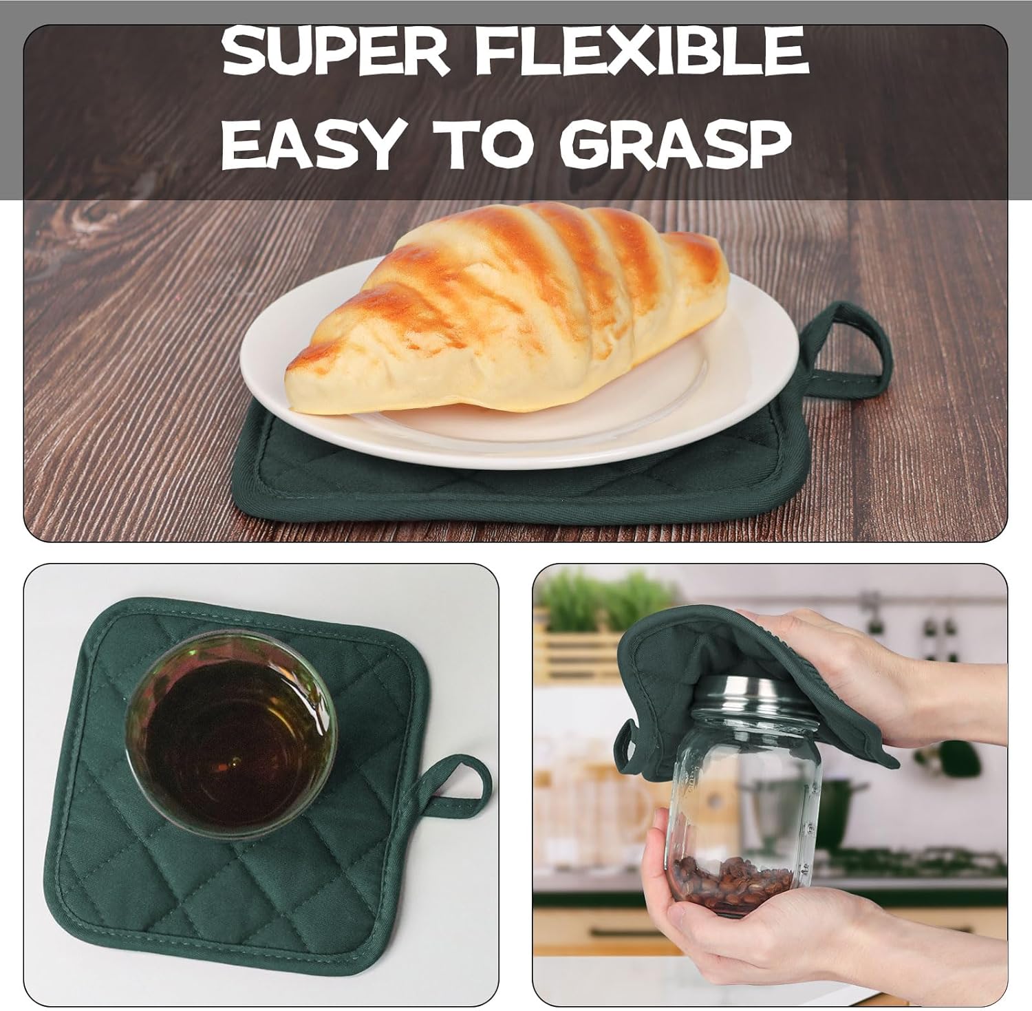 - 4 PIECE GREAT VALUE HOUSEHOLD ESSENTIALS PACK: Super value for 4pcs short oven mitts and pot holders, including 2 oven mitts(6.8 x 5.3in) and 2 pot holders (6.6 x 6.6in), perfect for daily use and coordinate well with your house and kitchen.