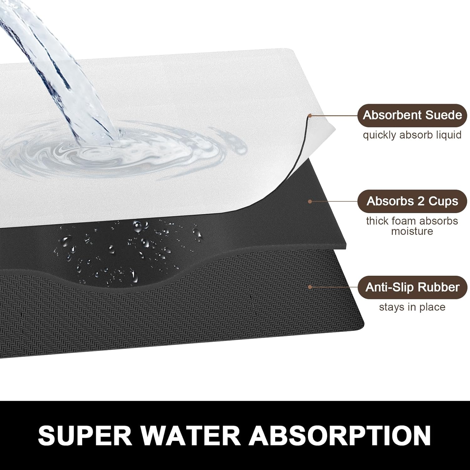 - Super Water Absorption: Dish Drying Pad mat is crafted from suede and super absorbent nano material. The surface is soft, anti-fray and can quickly and efficiently absorb water, which helping you to solve the dilemma of dampness after washing dishes