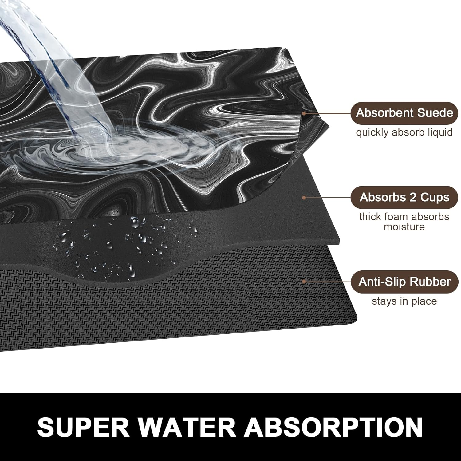 - Super Water Absorption: Dish Drying Pad mat is crafted from suede and super absorbent nano material. The surface is soft, anti-fray and can quickly and efficiently absorb water, which helping you to solve the dilemma of dampness after washing dishes
