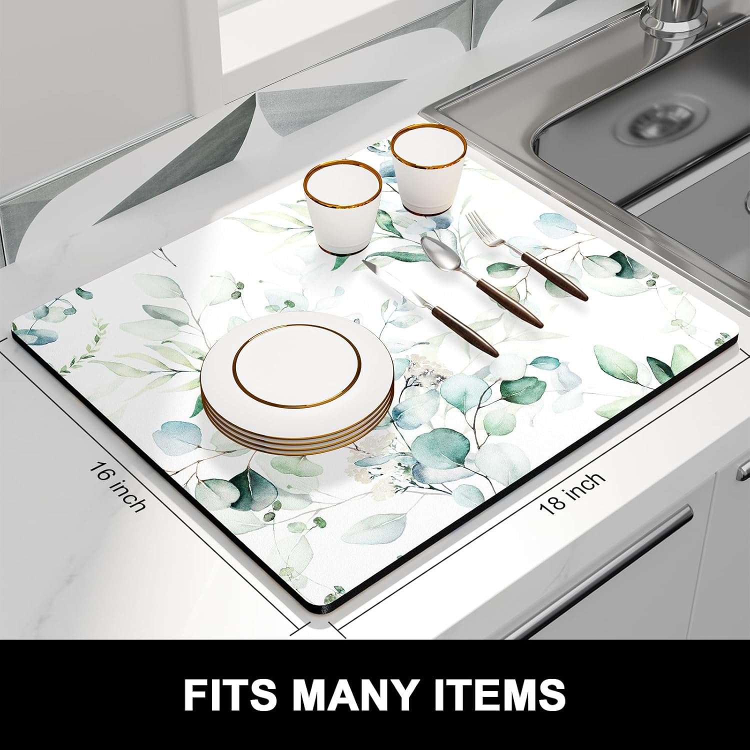 - Super Water Absorption: Dish Drying Pad mat is crafted from suede and super absorbent nano material. The surface is soft, anti-fray and can quickly and efficiently absorb water, which helping you to solve the dilemma of dampness after washing dishes