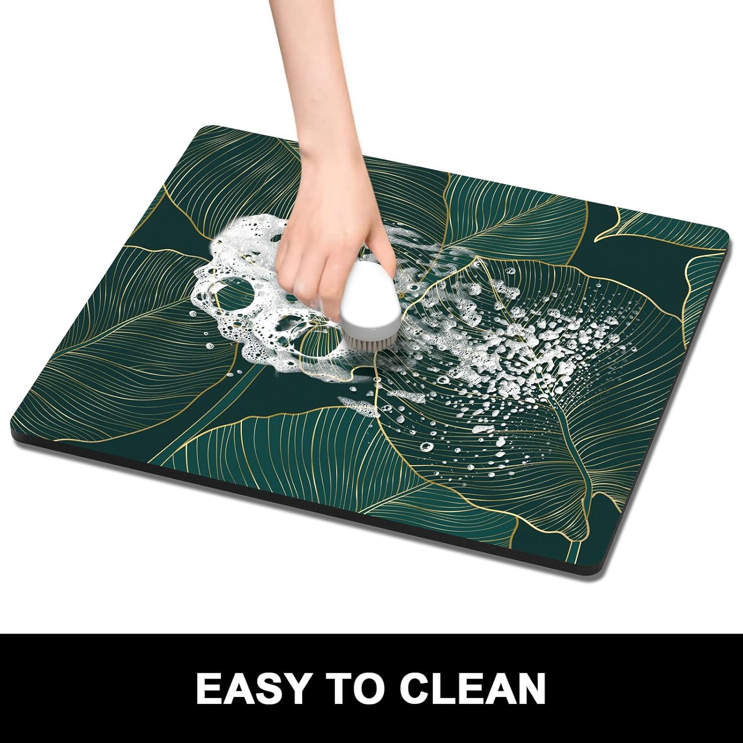 - Super Water Absorption: Dish Drying Pad mat is crafted from suede and super absorbent nano material. The surface is soft, anti-fray and can quickly and efficiently absorb water, which helping you to solve the dilemma of dampness after washing dishes