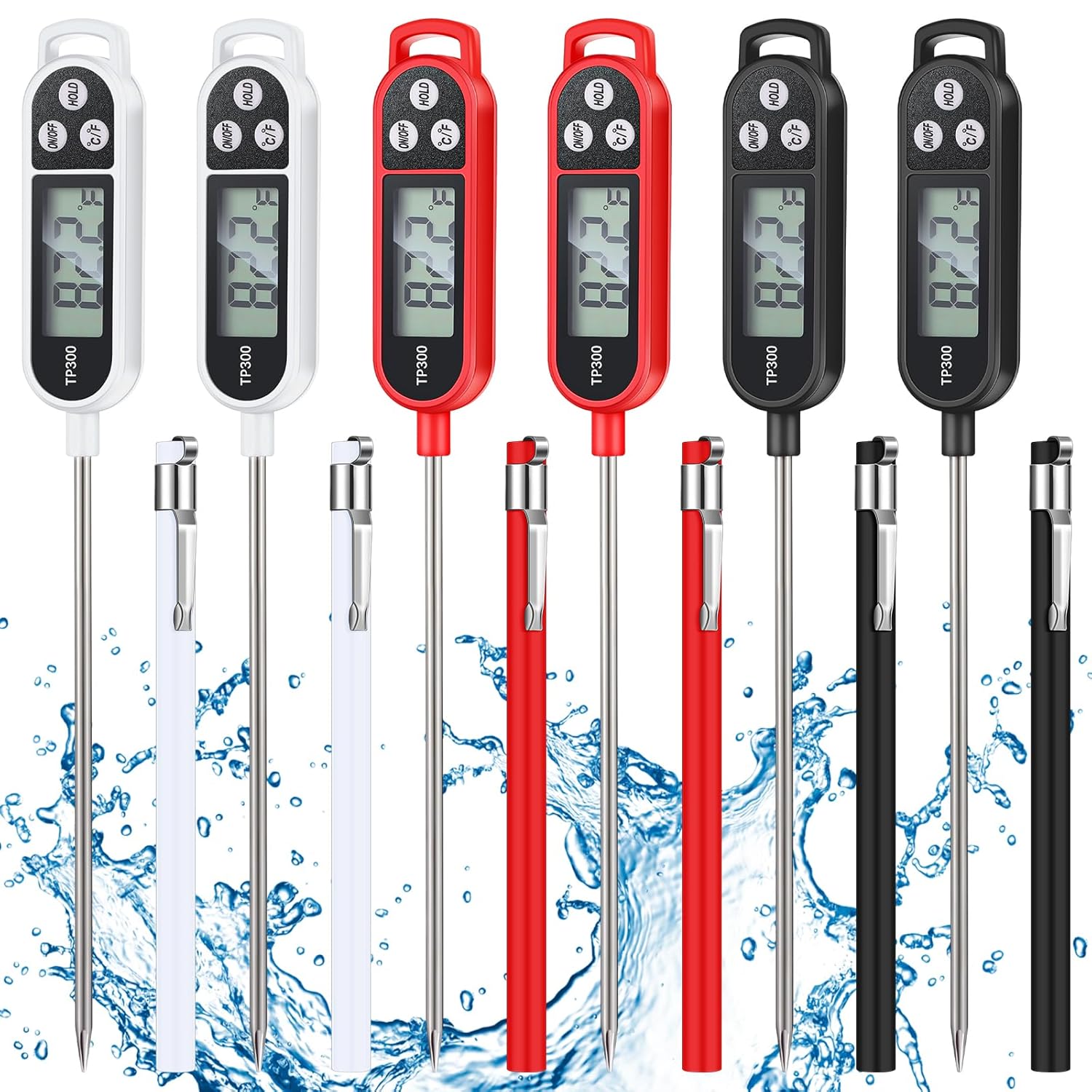 6 Pcs Meat Food Thermometer Food with Probe Water Liquid Instant Read Digital Thermometer Kitchen Cooking Supplies for Cooking BBQ Milk Yogurt (Black,White,Red)