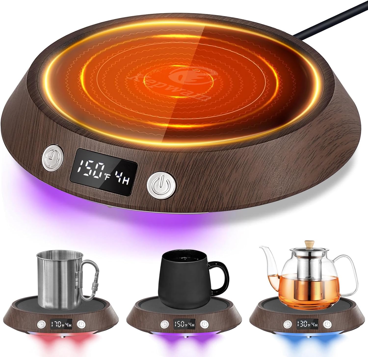 Coffee Mug Warmer – 55W Fast Heating Coffee Warmer, 3 Temperature Settings up to 170℉ with LED Lights, 2–9H Timer & Auto Shut-Off, Coffee Cup Warmer Gift for Women & Men, Office/Home Use