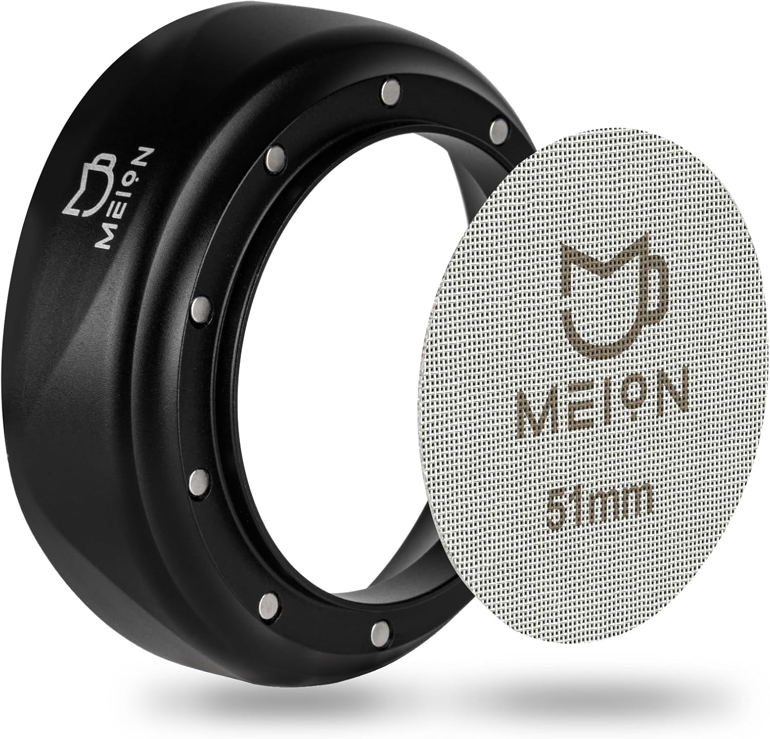 MEION 51mm Espresso Dosing Funnel and 51mm Puck Screen Set for 51mm Portafilters, Magnetic Coffee Portafilter Funnel, Reusable Espresso Puck Screen, Espresso Tools Espresso Accessories (51mm, Black)