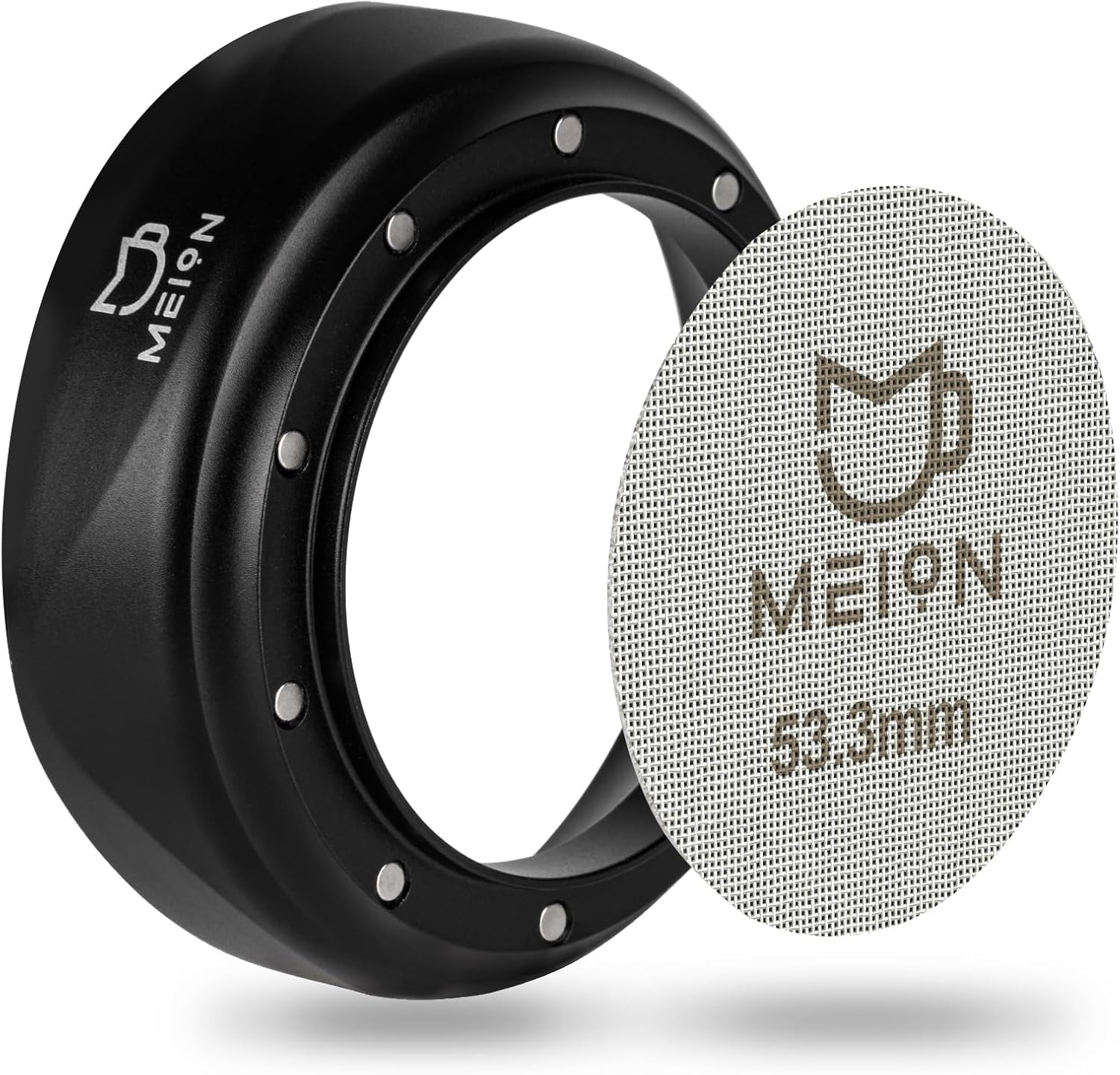 - 【Quality Espresso Tools, Espresso Accessories】 MEION 54mm dosing funnel and 53.3mm espresso puck screen for 54mm portafilters. Simply place it on the portafilter basket and take your espresso to the next level! Please Note: Our dosing funnel does NOT compatible with BREVILLE BARISTA TOUCH, BREVILLE PRO, Barista Express grinder.