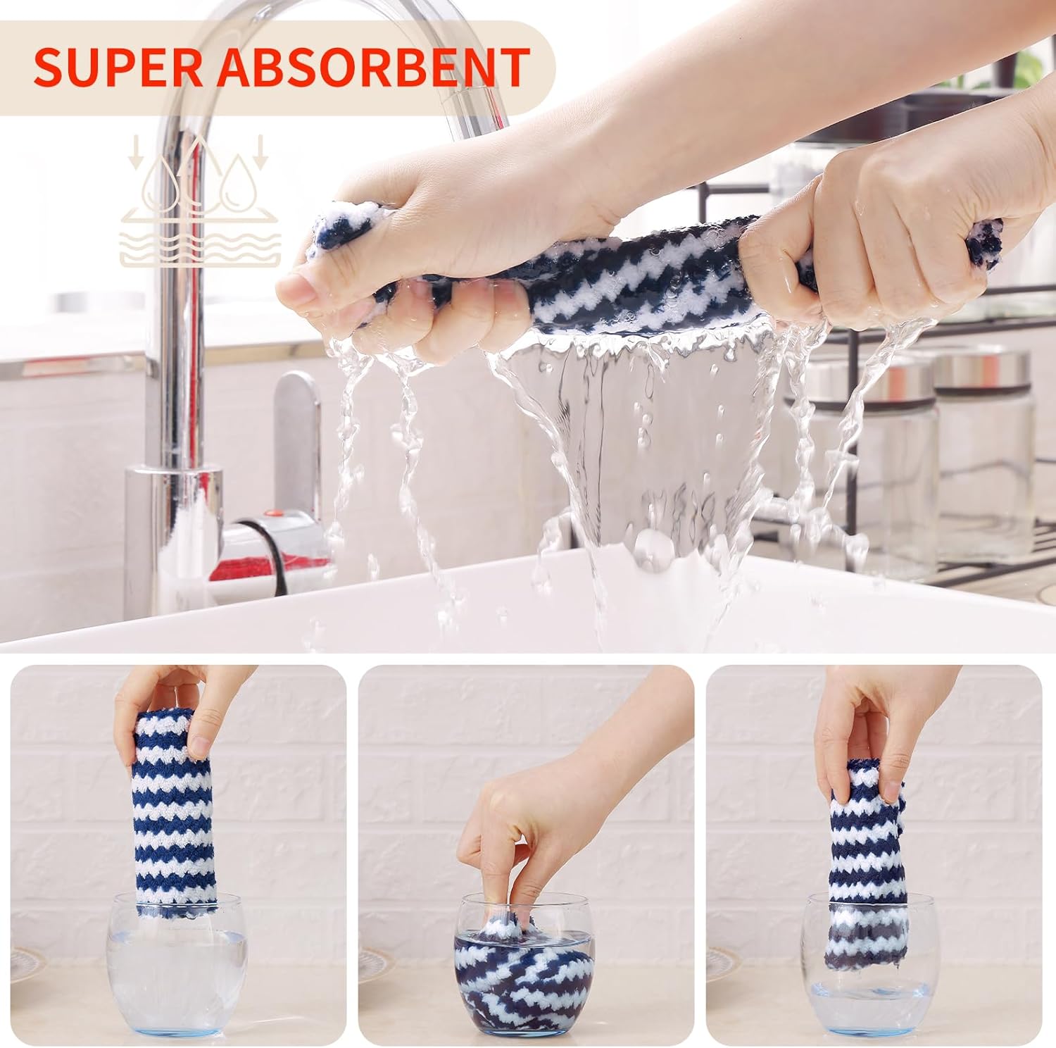 Homaxy Kitchen Towels(12 Pack, 10 x 20 inches), Ultra Soft and Absorbent Dish Towels, Reusable Fast Drying Microfiber Cleaning Cloth, Coral Velvet Wave Design No-lint, Navy Blue