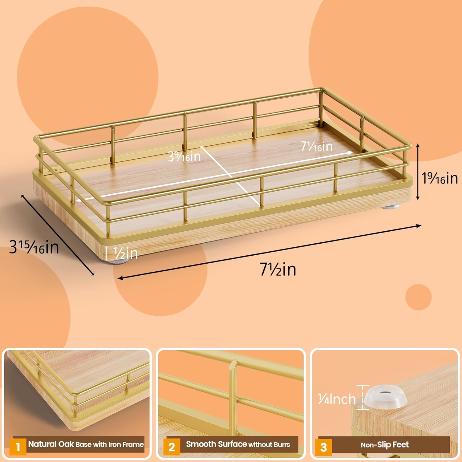- Versatile Functionality: Elevate your daily routine with our tray for bathroom counter; Neatly arrange bathroom essentials like mouthwash with cups, toothbrushes, cotton swab, keeping your countertop tidy; Add a touch of elegance to your dresser by using the vanity tray to showcase perfumes, jewelry, and candles; The small tray can also be used to store keys, watches and change at the entrance