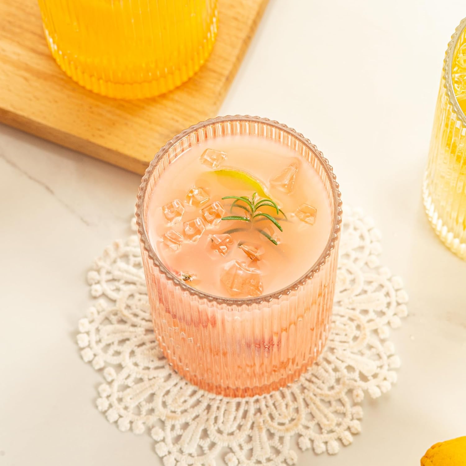 - 【HIGH QUALITY MATERIAL】The cocktail glasses set are made of high-quality glass, are lead-free and non-toxic. More robust and scratch-resistant than ordinary glassware. The glassware have a thickened construction. Dishwasher safe to ensure safe use in your daily life, The crystal clear glass tumblers are adorned with symmetrical carvings that create a delightful tactile experience when held, suit aesthetic stuff clean girl needs