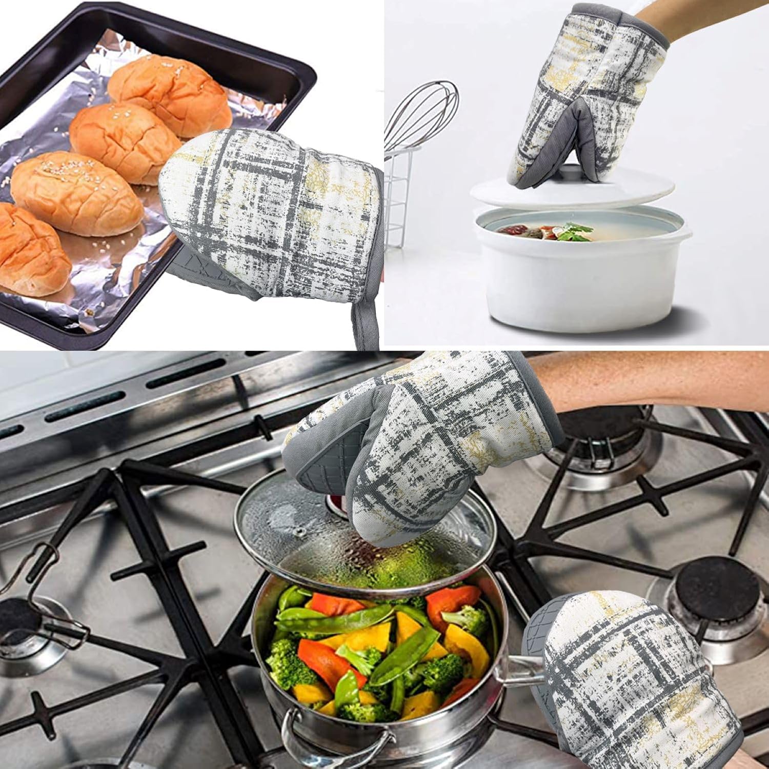 Mini Silicone Oven Mitts, Heat and Slip Resistant Kitchen Gloves 2-Pack Set, Vintage Plaid Soft Oven Mittens, Flexible Pot Holders for Cooking Baking and Grilling (Vintage Grey)