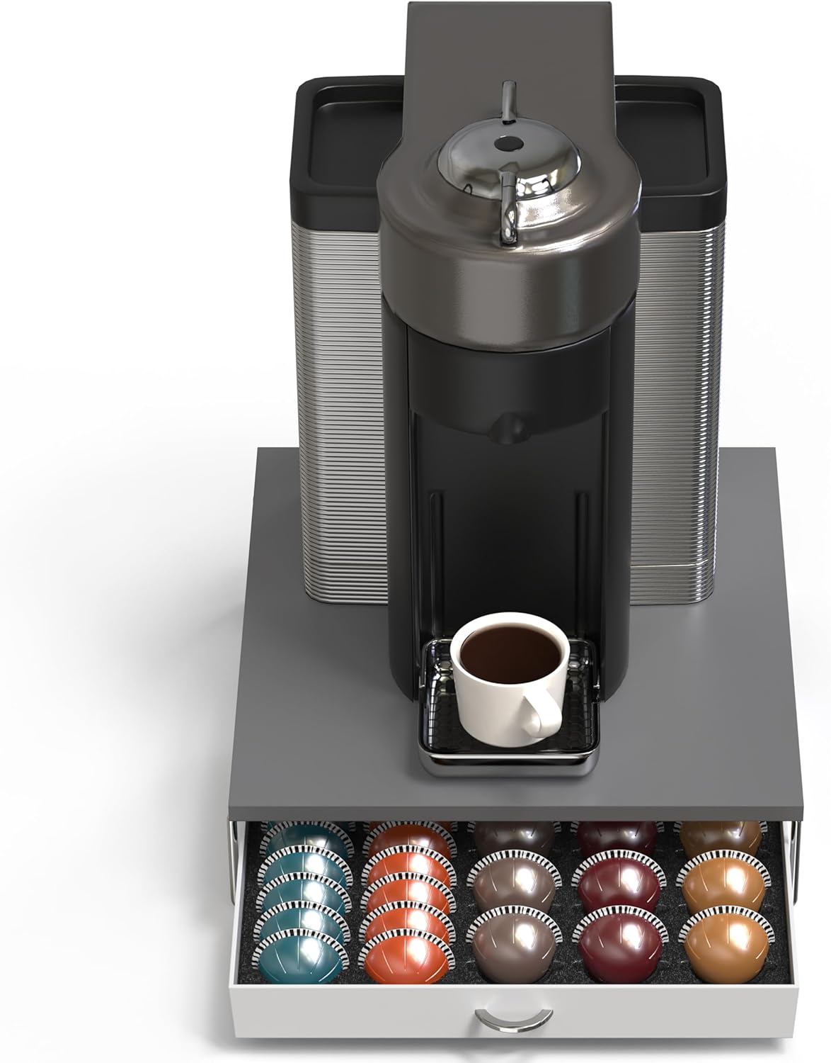 - [ Sliding Drawer Design ] The sliding drawer mechanism allows easy access to your coffee pods, making selecting and using them convenient.