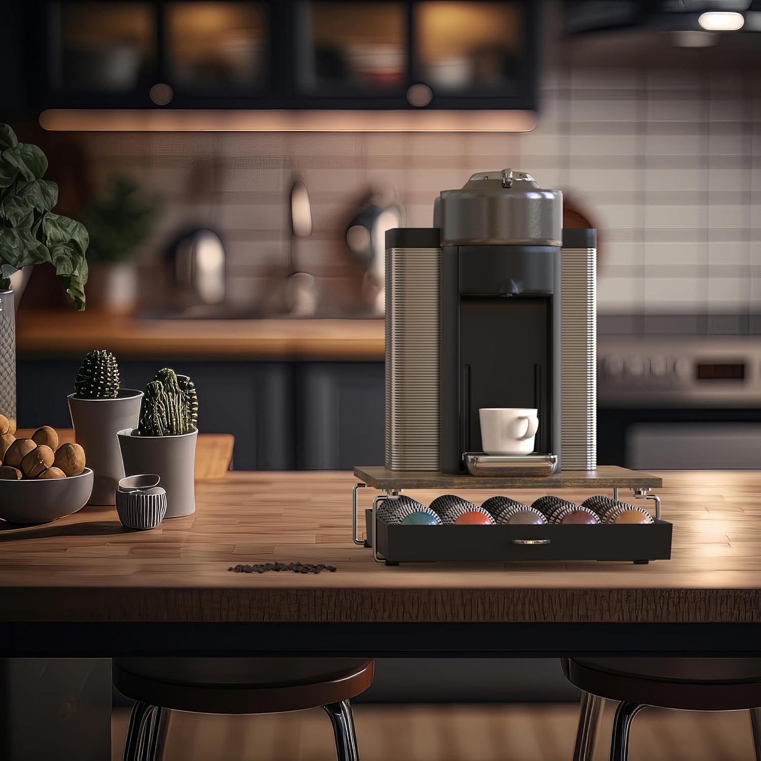 DecoBrothers Supreme Vertuoline Drawer, Holds with 30 Big or 60 Small Vertuoline Pods, Rustic Brown