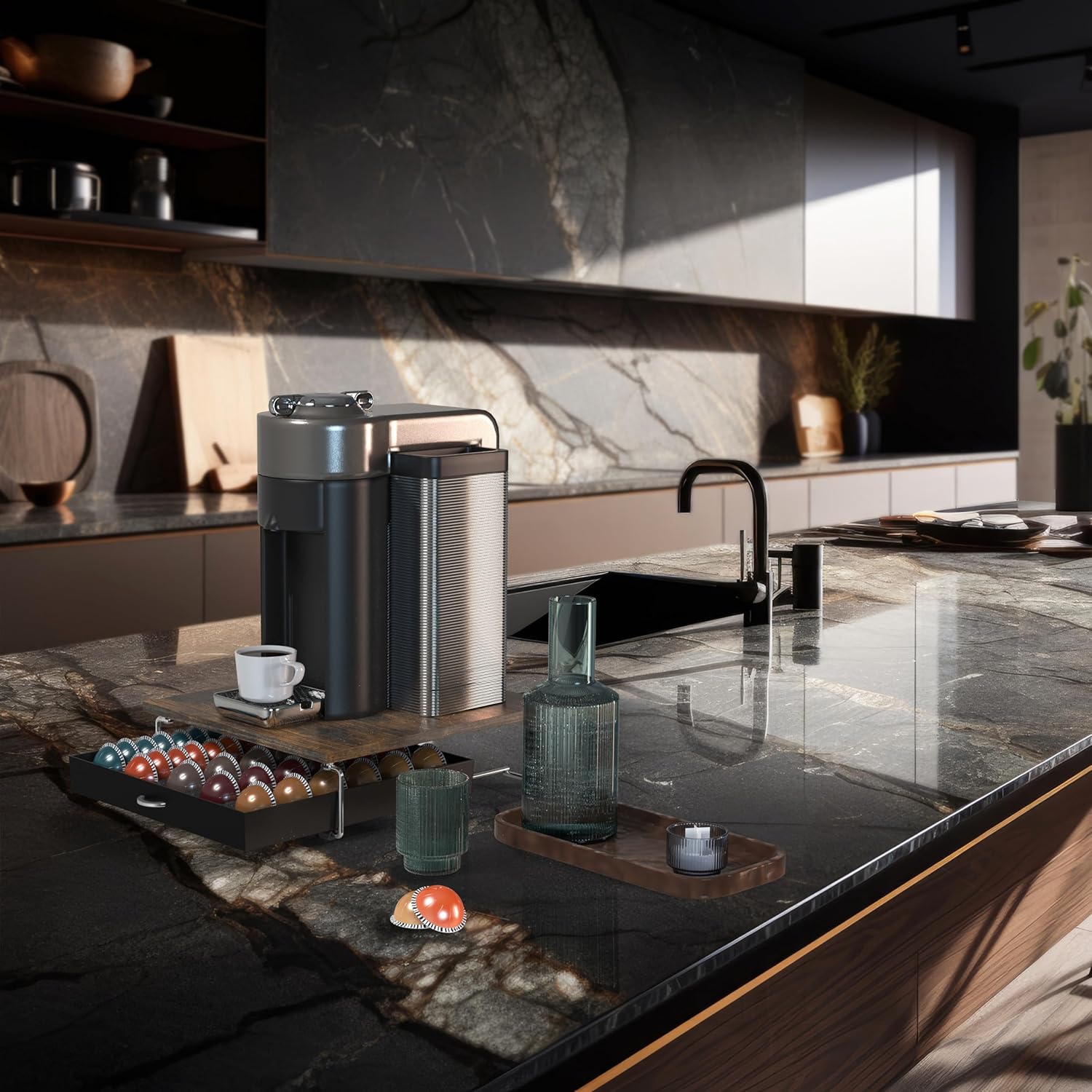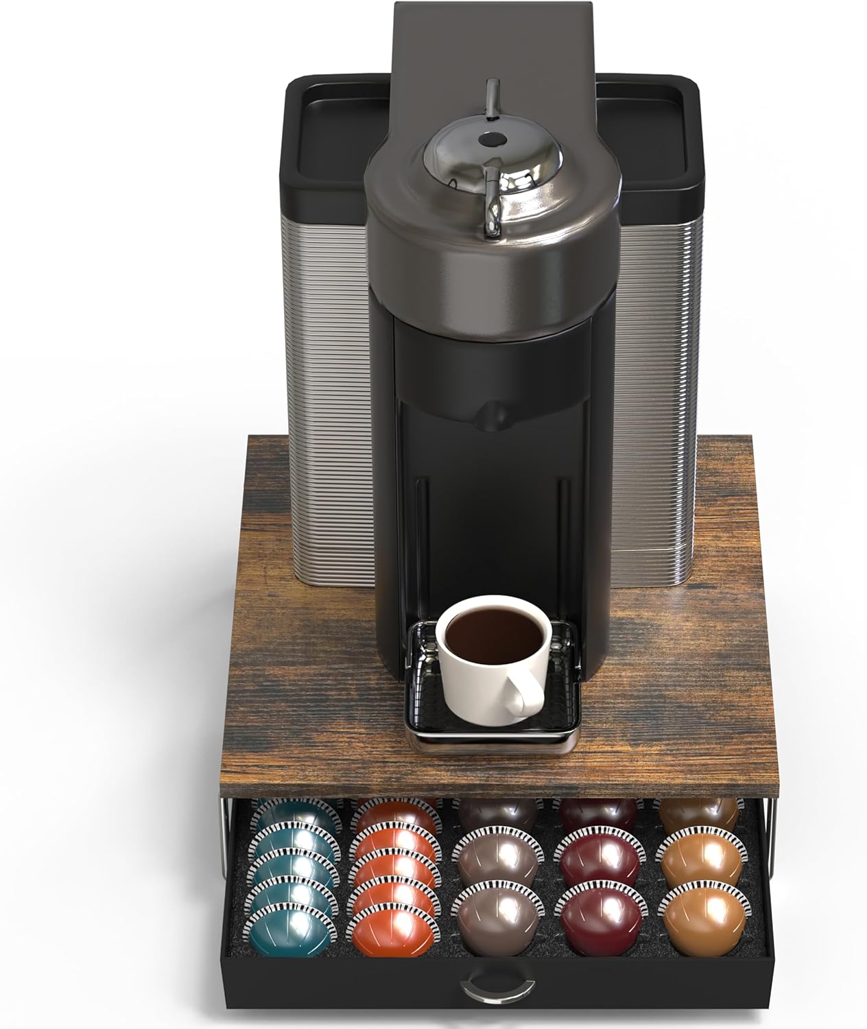 - [ Sliding Drawer Design ] The sliding drawer mechanism allows easy access to your coffee pods, making selecting and using them convenient.