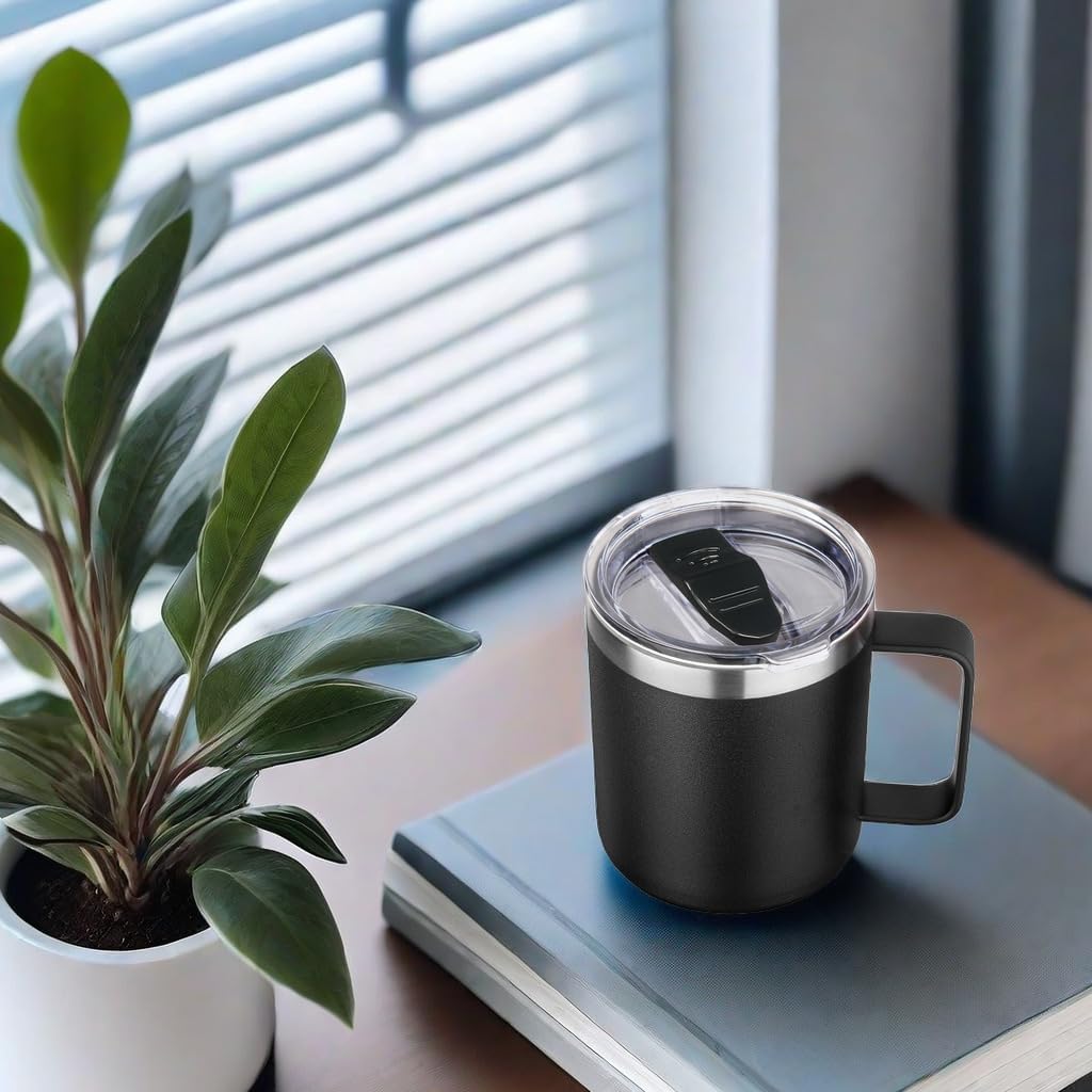Volhoply 14oz Insulated Stainless Steel Coffee Mug with Lid Bulk 2 Pack,Double Wall Vacuum Travel Coffee Cup with Handle,Reusable Cups Tumbler,Camping Mugs Keep Hot,Ideal Gifts(Black,2 Set)