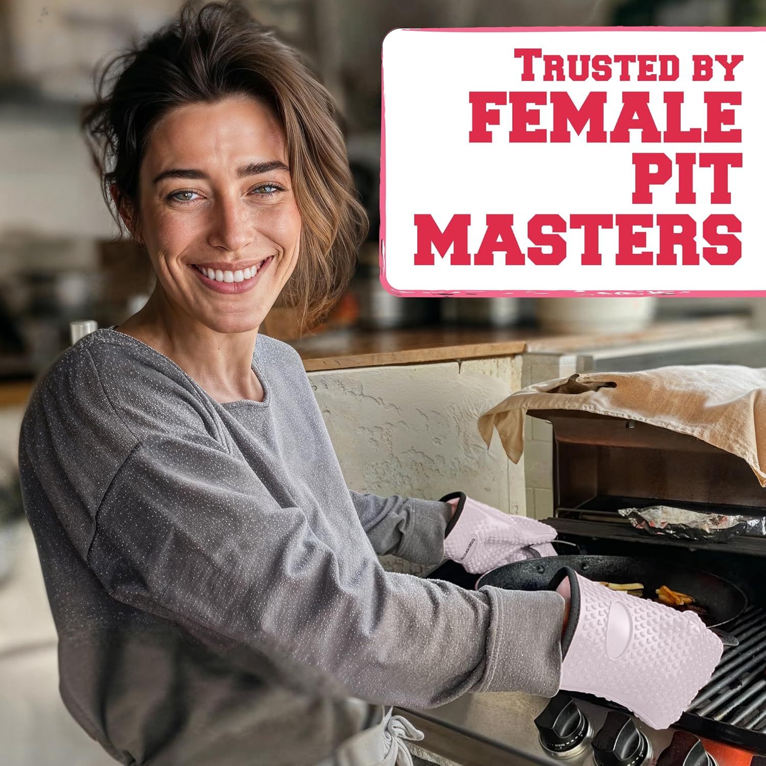 KITCHEN PERFECTION XL Silicone Smoker Oven Gloves for Women -Extreme Heat Resistant BBQ Gloves -Handle Hot Food Right on Your Grill Fryer&Pit|Waterproof Grilling Cooking Mitts|Superior Set+3 Bonuses