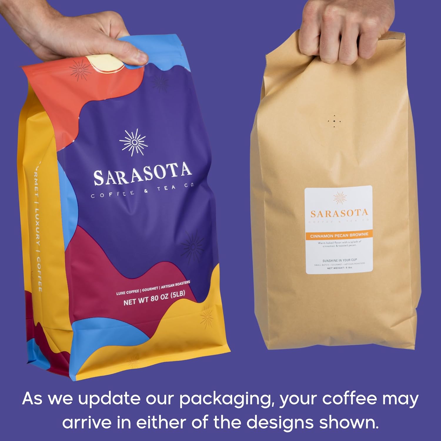 Sarasota Coffee Ground Cinnamon Pecan Brownie | Medium Roast Gourmet Flavored Coffee Grounds | Low Acid, Mold Free, Specialty Grade Flavored Bulk Ground | 5lb (80 oz)