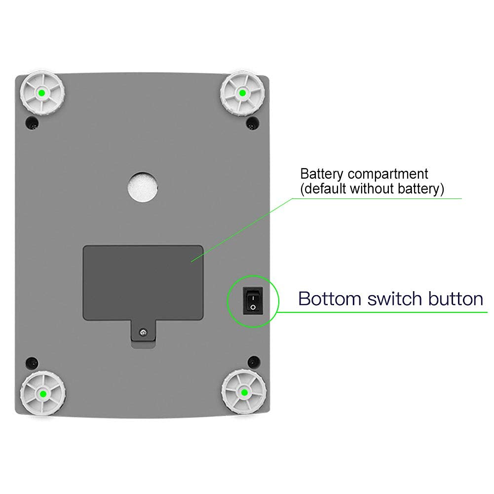 - This digital electronic balance is composed of ABS body cover +Stainless steel pan +plastic base.Plate size: 17.5*19cm