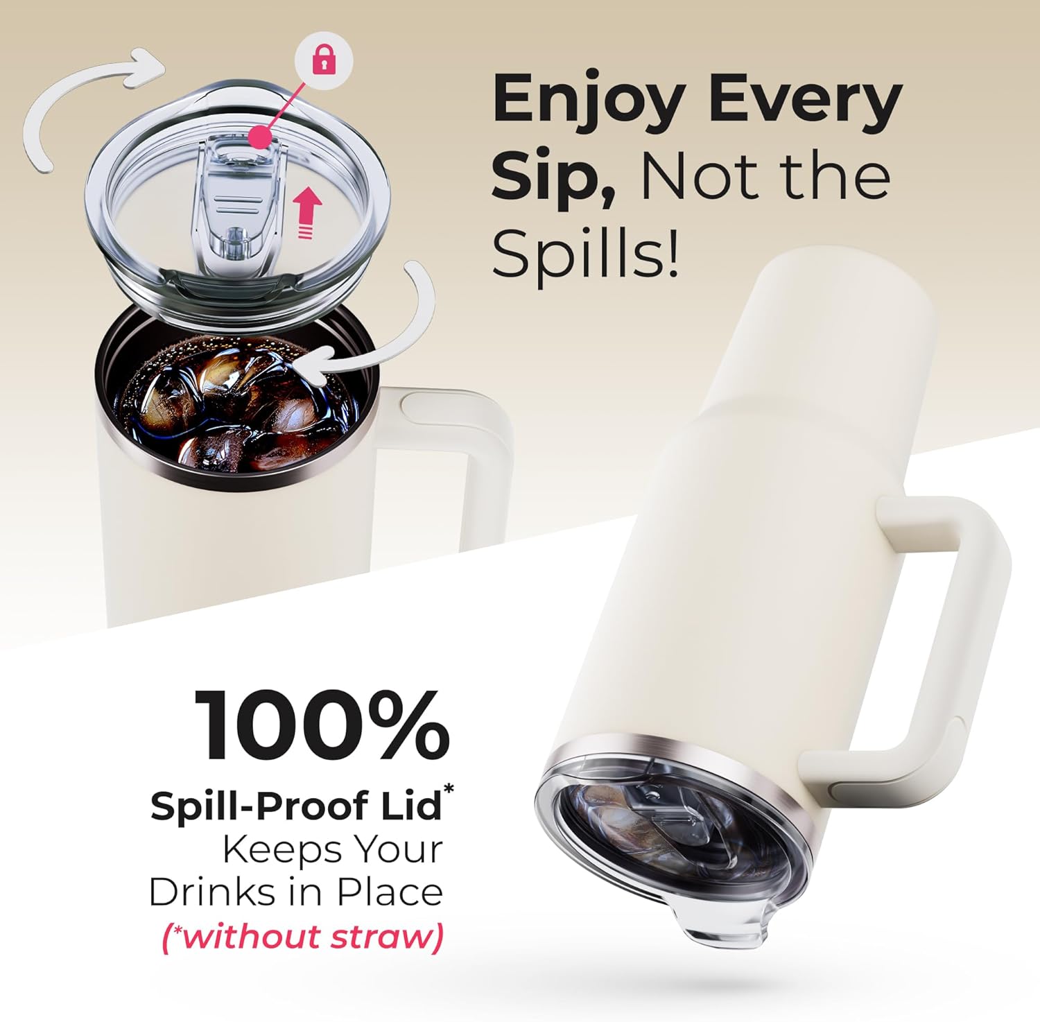 - Dishwasher Safe and Easy to Clean: Designed for convenience, this leak proof tumbler is dishwasher safe. The stainless steel construction ensures long-lasting durability, while the large handle adds to its functionality. Compatible with most cup holders, it's perfect for use at home, in the office, or on the go.