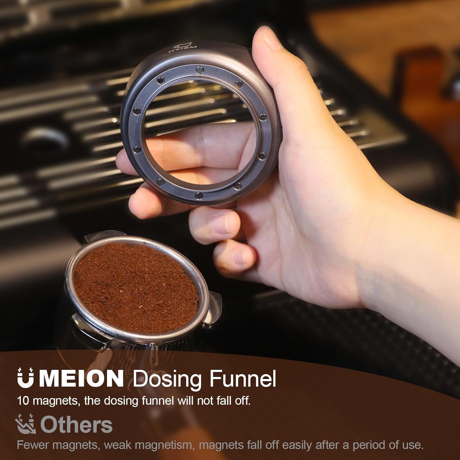 - 【Overflow Control 】 No more mess and spilled over grinds. MEION portafilter funnel is made of anodized aluminum, sturdy and will not rust.