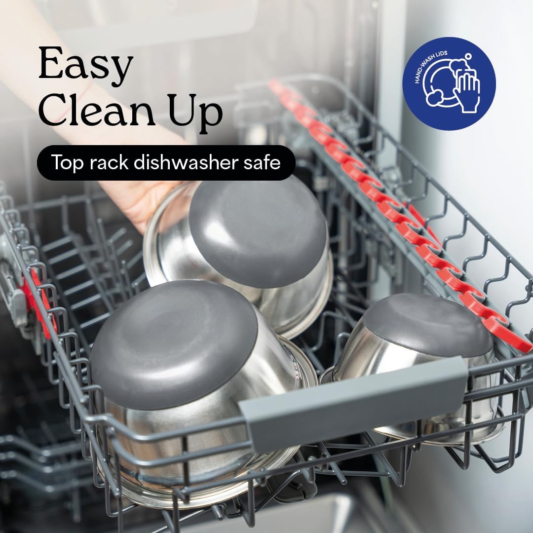 - Effortless Cleanup with Dishwasher Safe Design: Our stainless steel metal mixing bowls with lids are dishwasher safe, allowing you to focus on what you love - cooking and baking. Skip the tedious task of hand-washing and enjoy more time to savor your delicious creations. This convenient feature is especially beneficial for home chefs desiring practicality without compromising on the professional quality and precision of your kitchen tools.