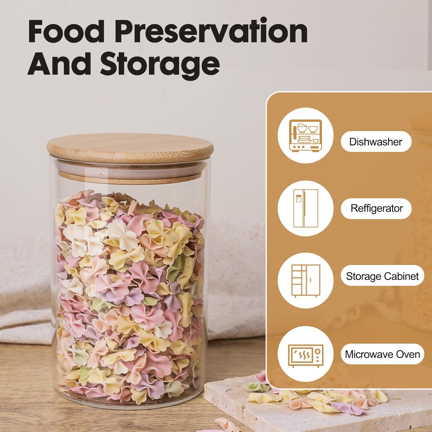 - Premium Quality and Safety Assurance: Crafted from high-quality, durable glass, our jars are designed to withstand the rigors of daily use. The bamboo lids provide an airtight seal, ensuring the freshness and safety of your stored food. Rest easy knowing that our jars are free from harmful chemicals, making them a healthy and reliable choice for your kitchen.
