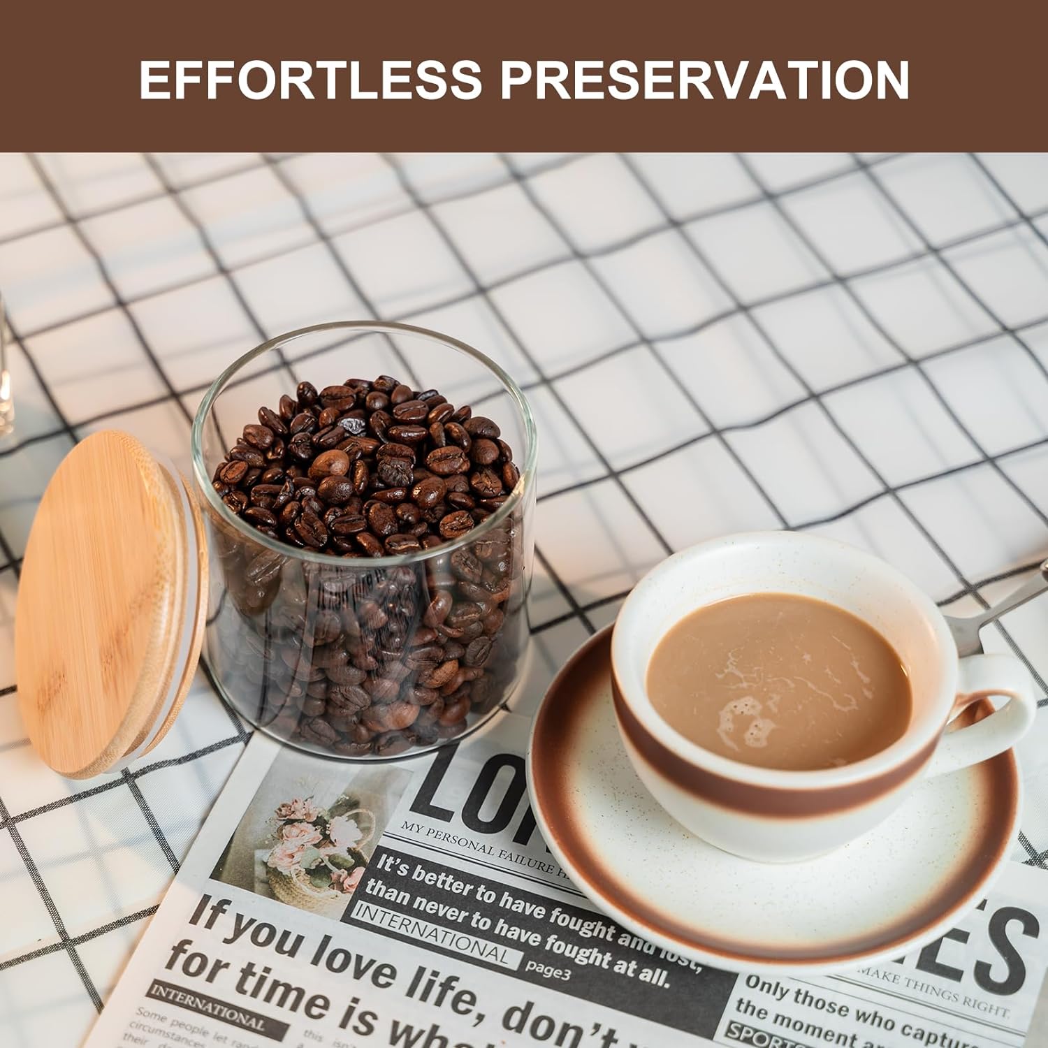 Glass Food Storage Jars 6-Pack - 4x4 in-Clear Glass Food Canisters with Bamboo Lid Airtight For Serving Tea, Coffee, Flour, Sugar, Candy, Cookie, Spice and More (Circular)