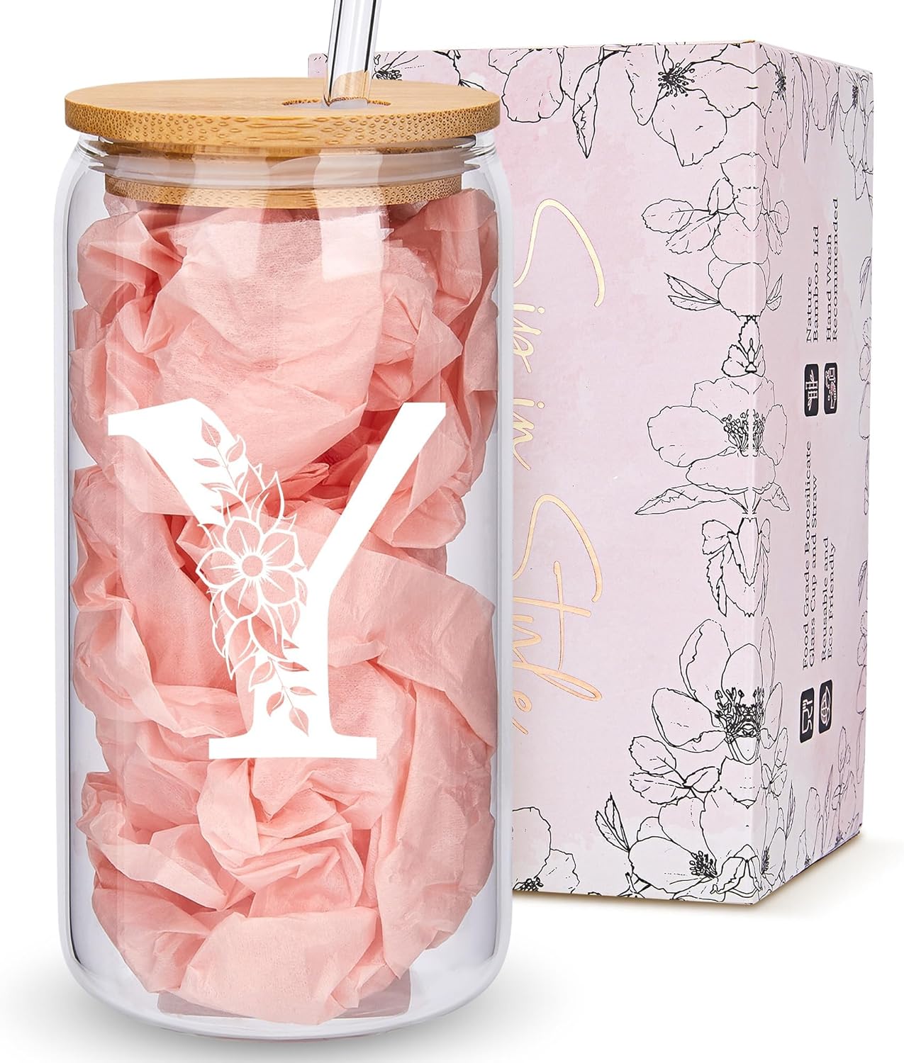 Personalized Gifts for Women, Monogrammed Glass Cups with Lids and Straws, Custom Tumbler, Cute Customized Mug, Aesthetic Stuff, Initial Iced Coffee Cup, Drinking Glasses, Birthday Teacher Gifts, Y