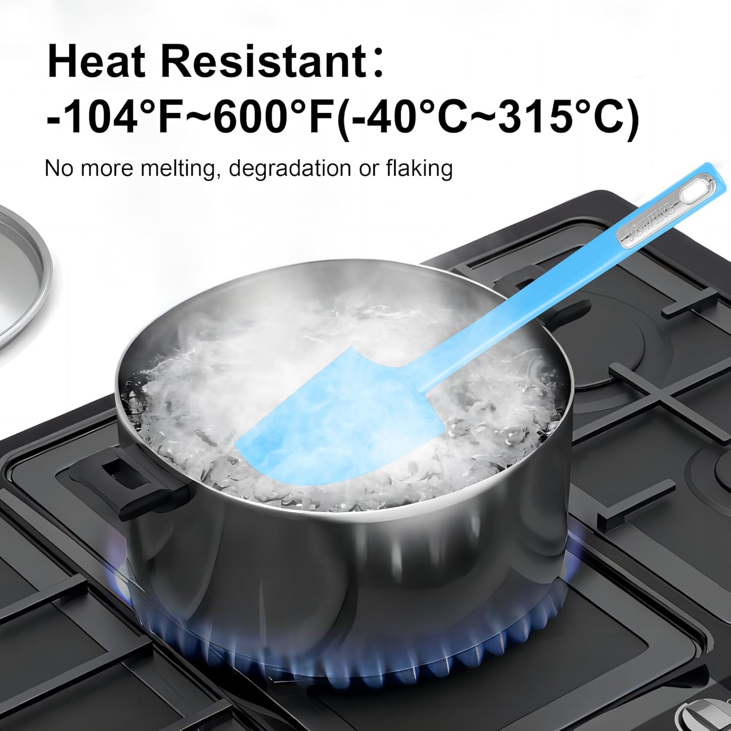 - 2. Durable and High Temperature Resistant : This silicone spatula set can withstand temperatures ranging from -104°F to 600°F (-40°C to 315°C), the average heat-resistant temperature of silicone spatulas ranges from 400 to 600 degrees Celsius. The core of silicone spatulas is reinforced, which makes it stronger, there's no more melting and cracking troubles.
