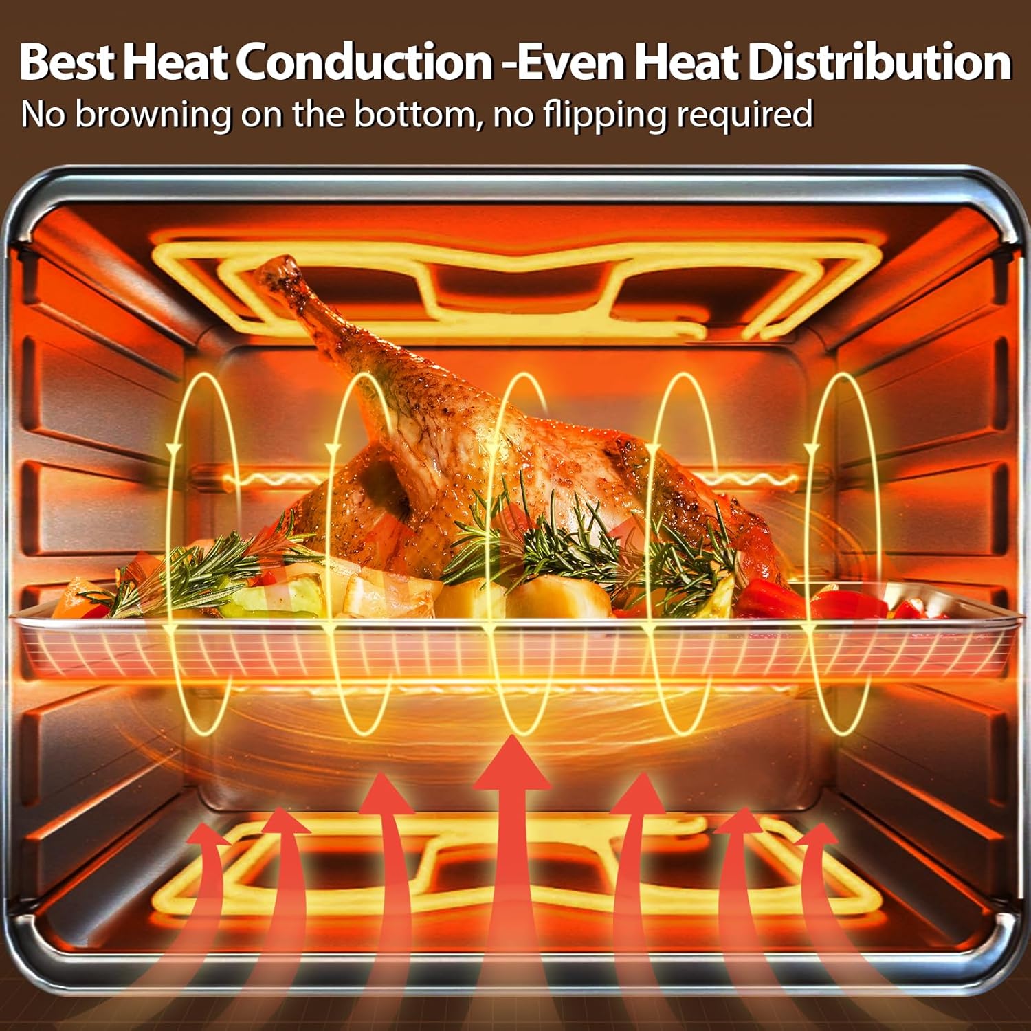 - High-Quality Stainless Steel: Our baking sheet is made of professional food grade high quality stainless steel, with a thickness of 0.8 mm, making it extremely sturdy and durable. And it can withstand temperatures up to 450°F, and the reinforced encapsulated steel edges prevent warping, ensuring that our baking pan remains perfectly shaped forever